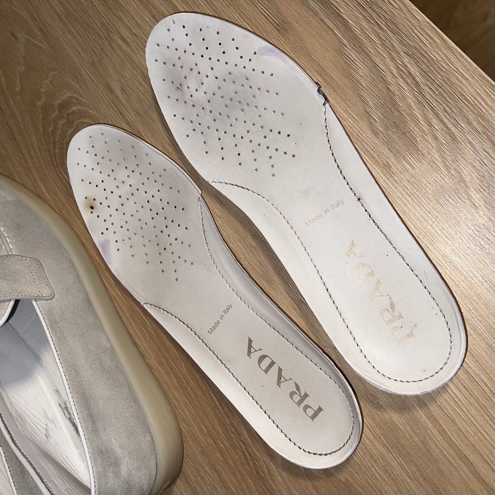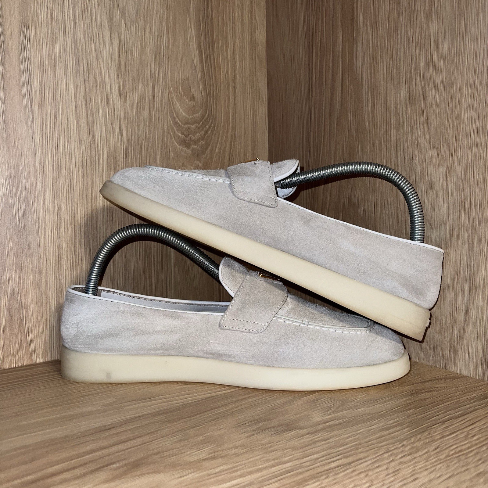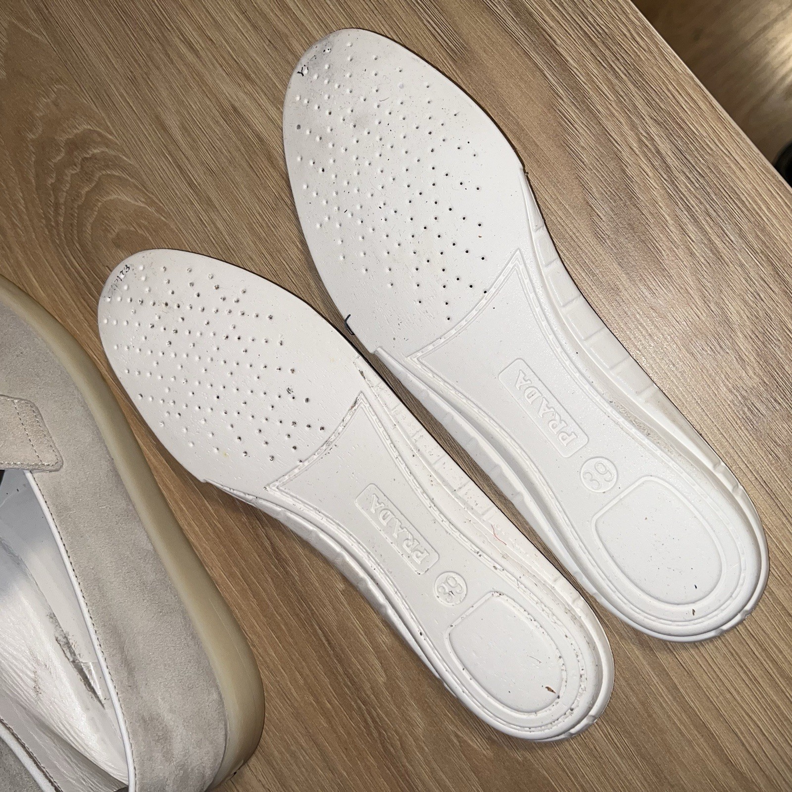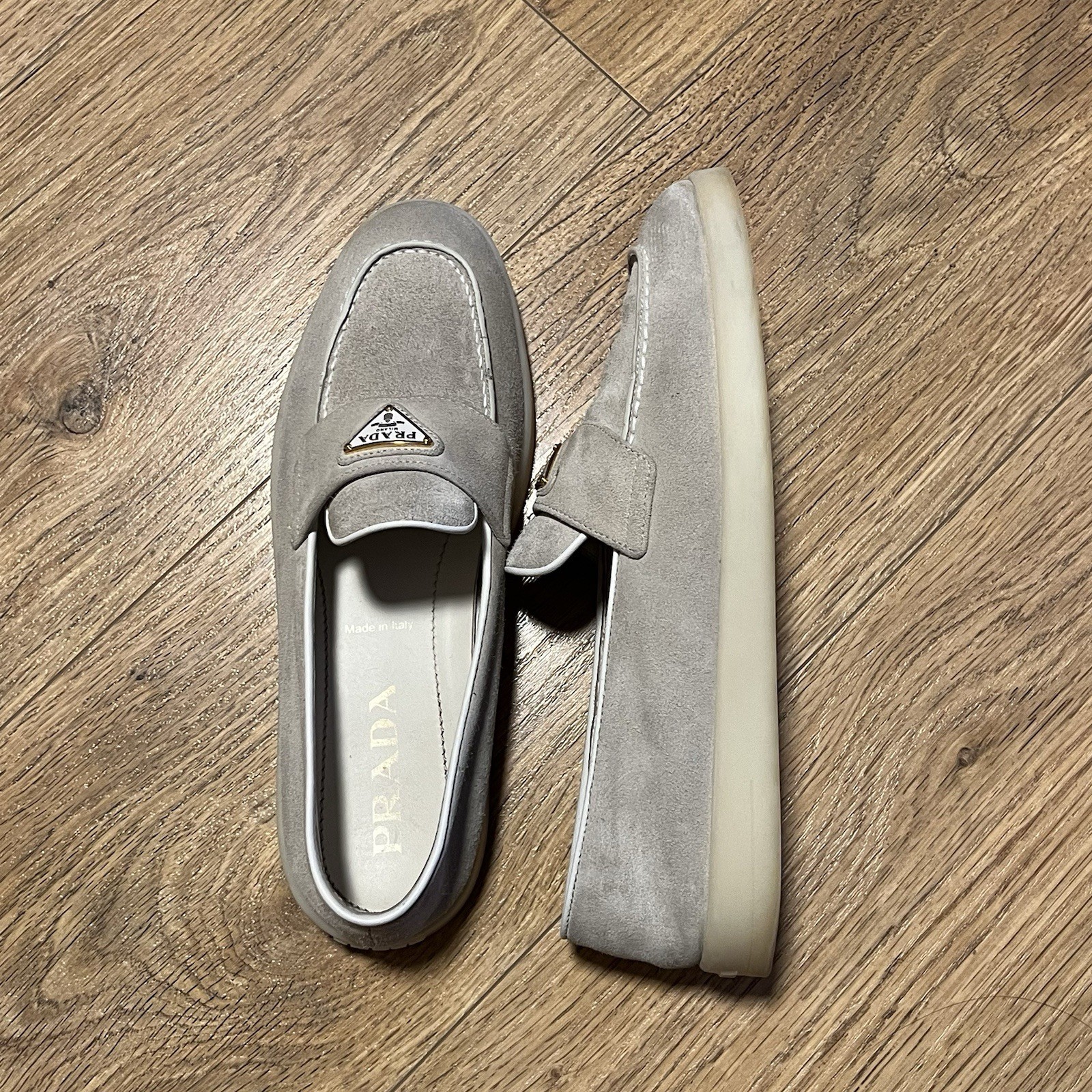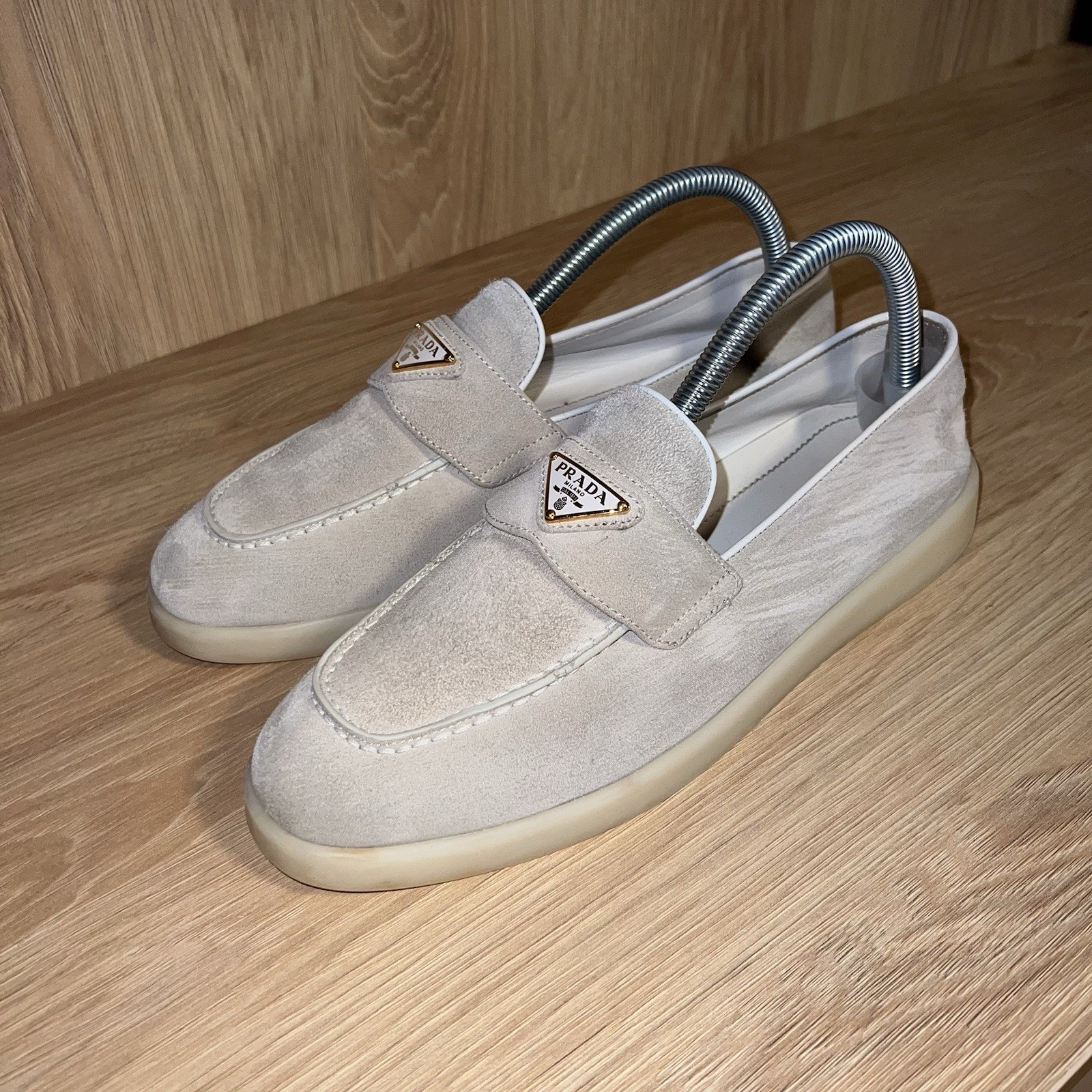 как выглядит Prada suede saint tropez loafers womens beige фото