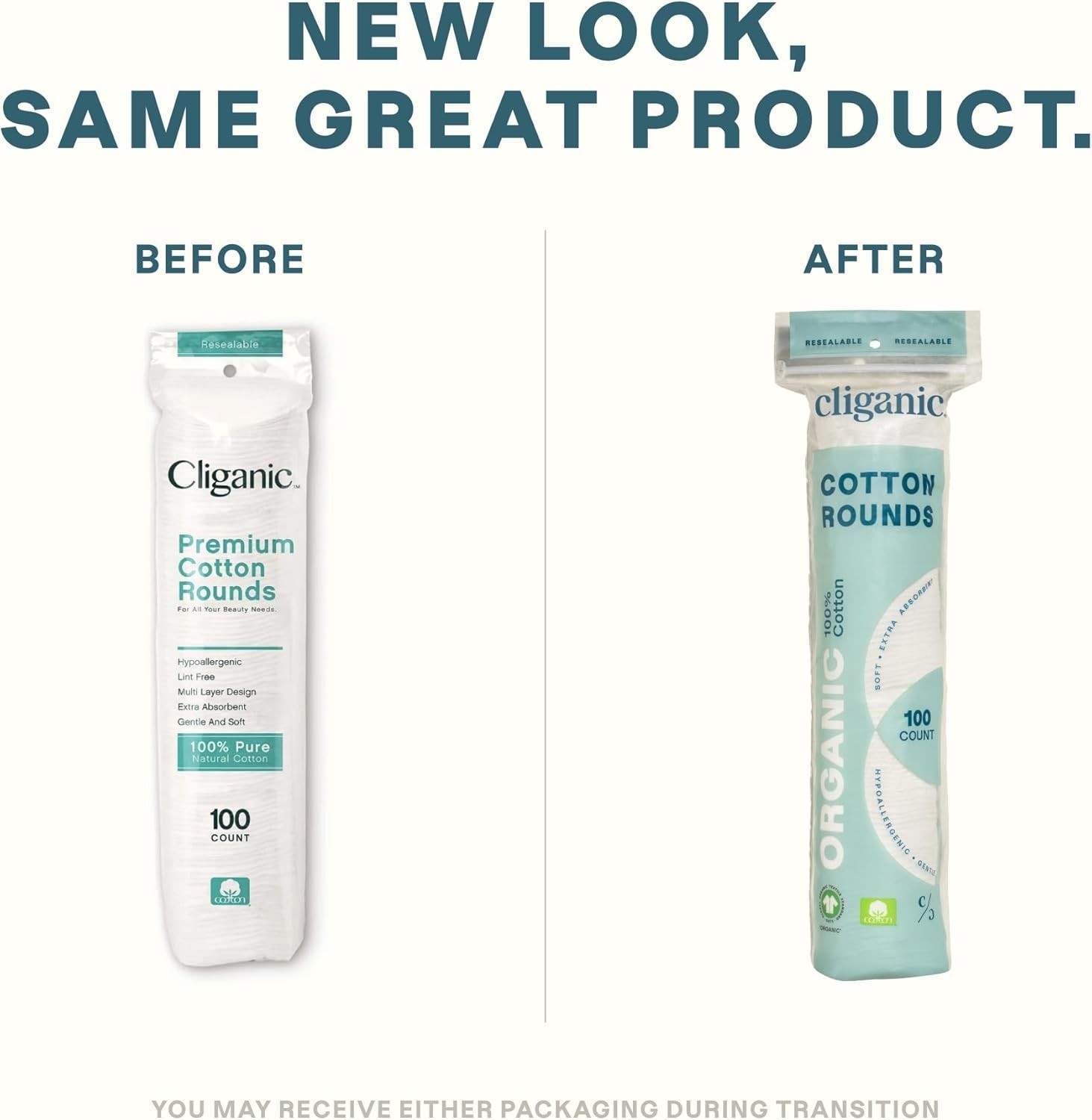 Organic Cotton Rounds 300 Count Makeup Remover Pads, Hypoallergenic, Lint-Fre...