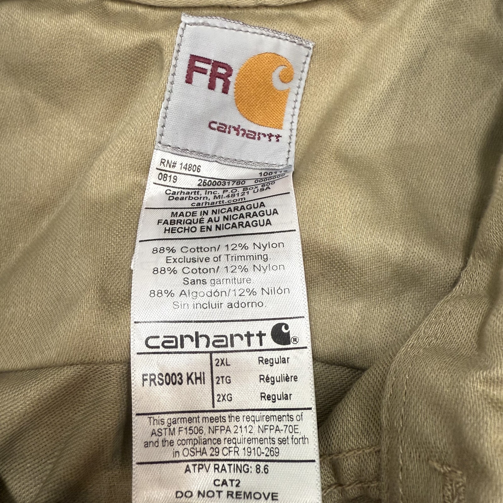 Carhartt Shirt Mens 2XL Brown Flame Resistant Button Up Work FR FRS003 Branded