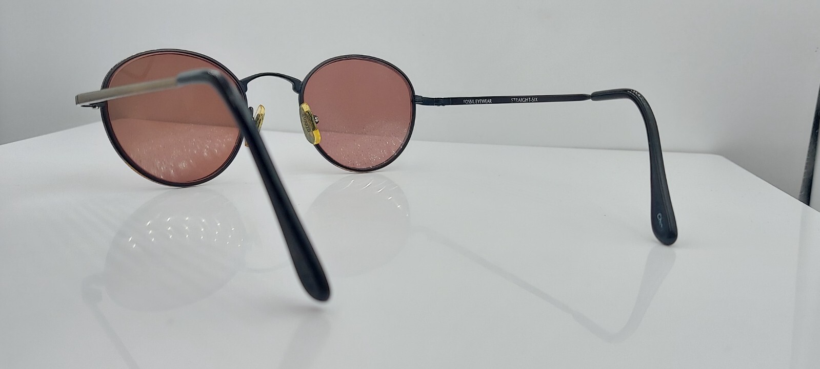 Vintage Fossil Eyewear Straight Six Gold Round Metal Sunglasses FRAMES ONLY