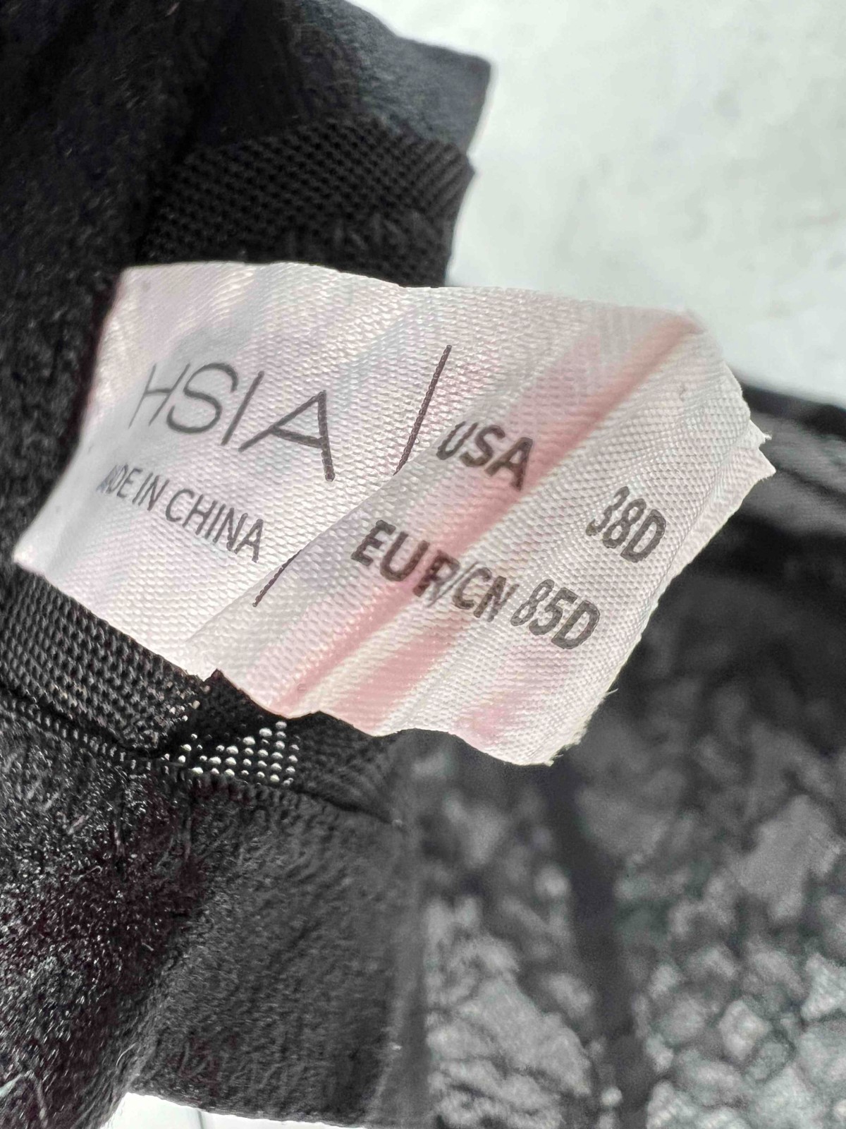 NWT Hsia Woman Black Bra Underwired Unlined Lace Hook Eye Strap Size 38D