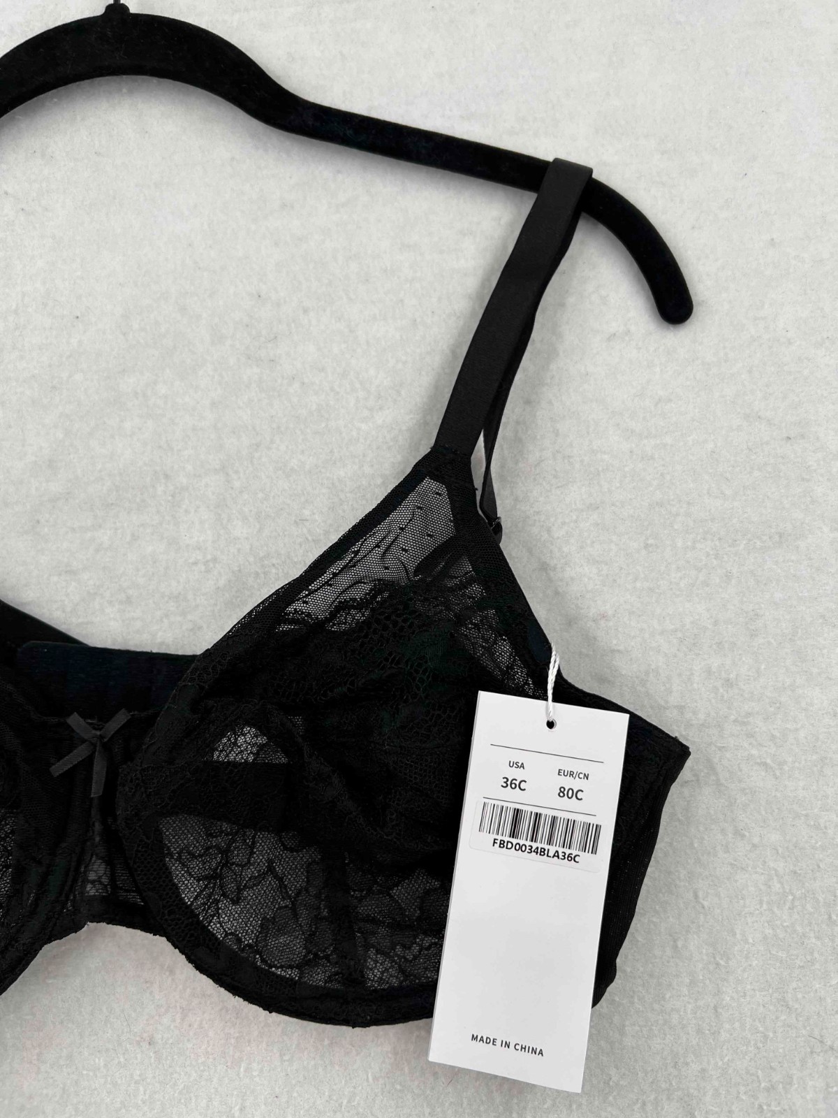 NWT Hsia Woman Black Bra Underwired Unlined Lace Hook Eye Strap Size 36C