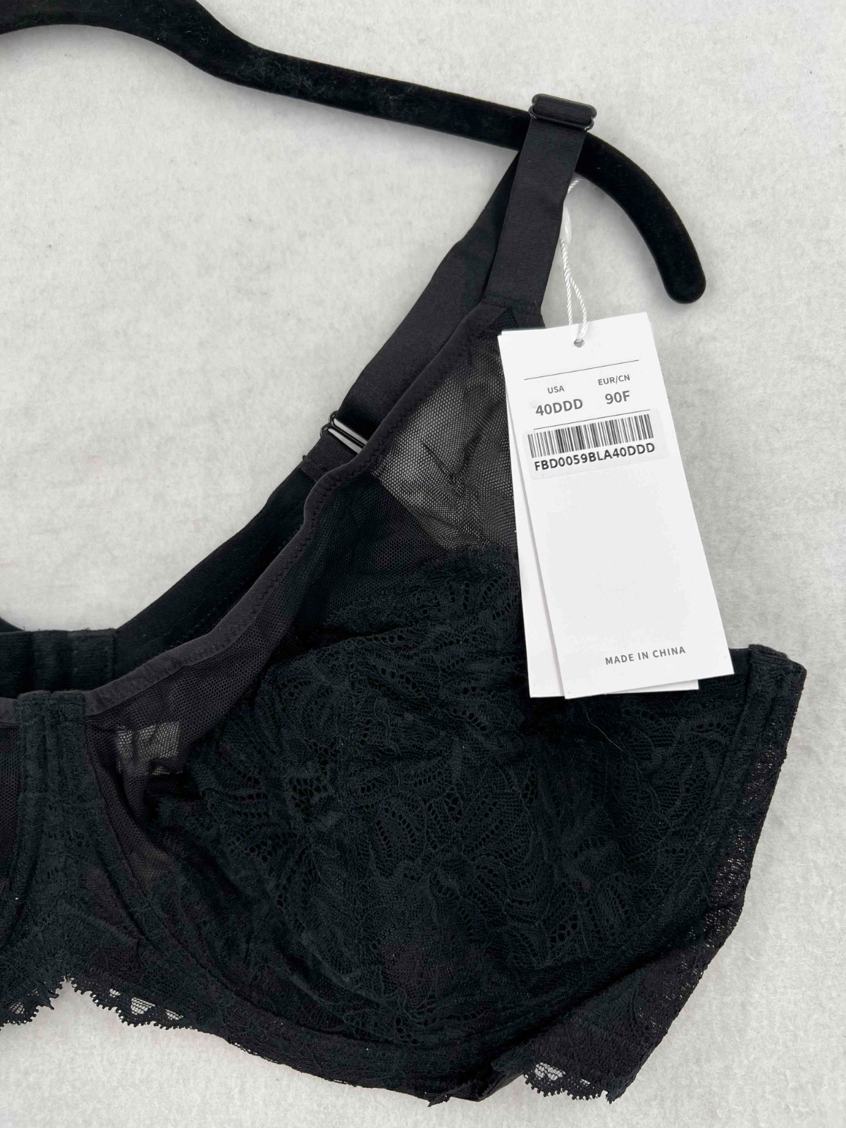 NWT Hsia Woman Black Bra Underwired Unlined Lace Hook Eye Strap Size 40DDD