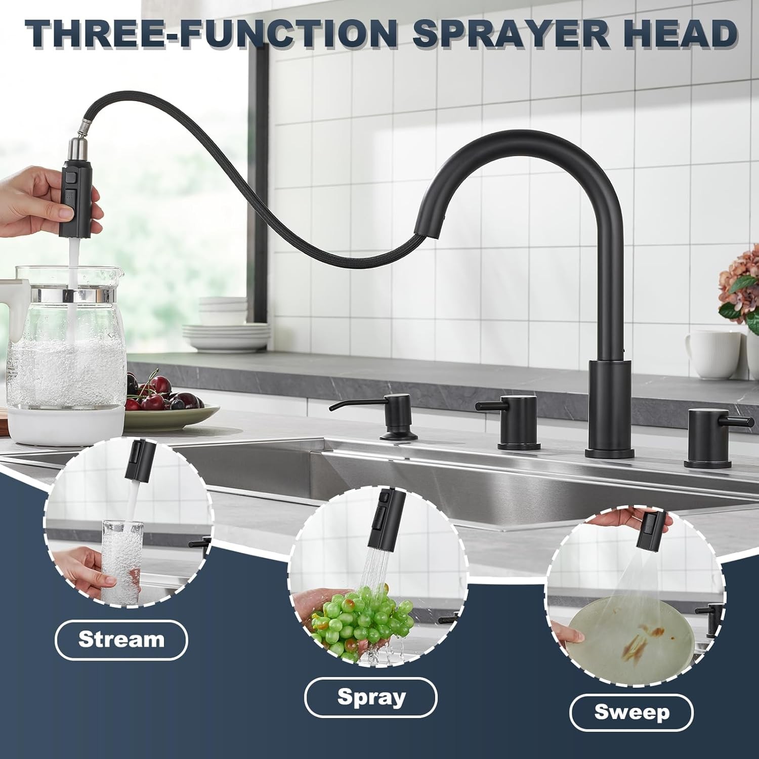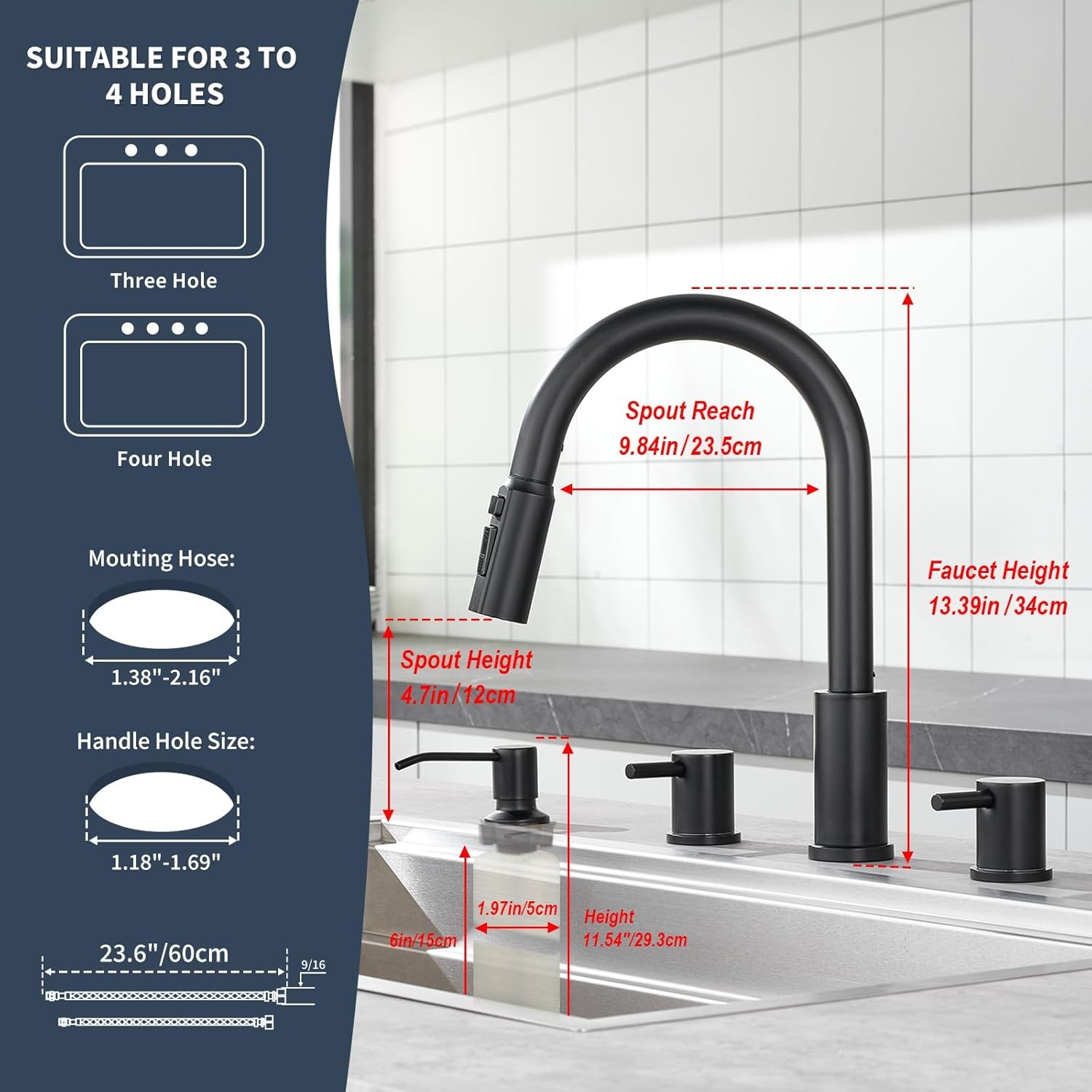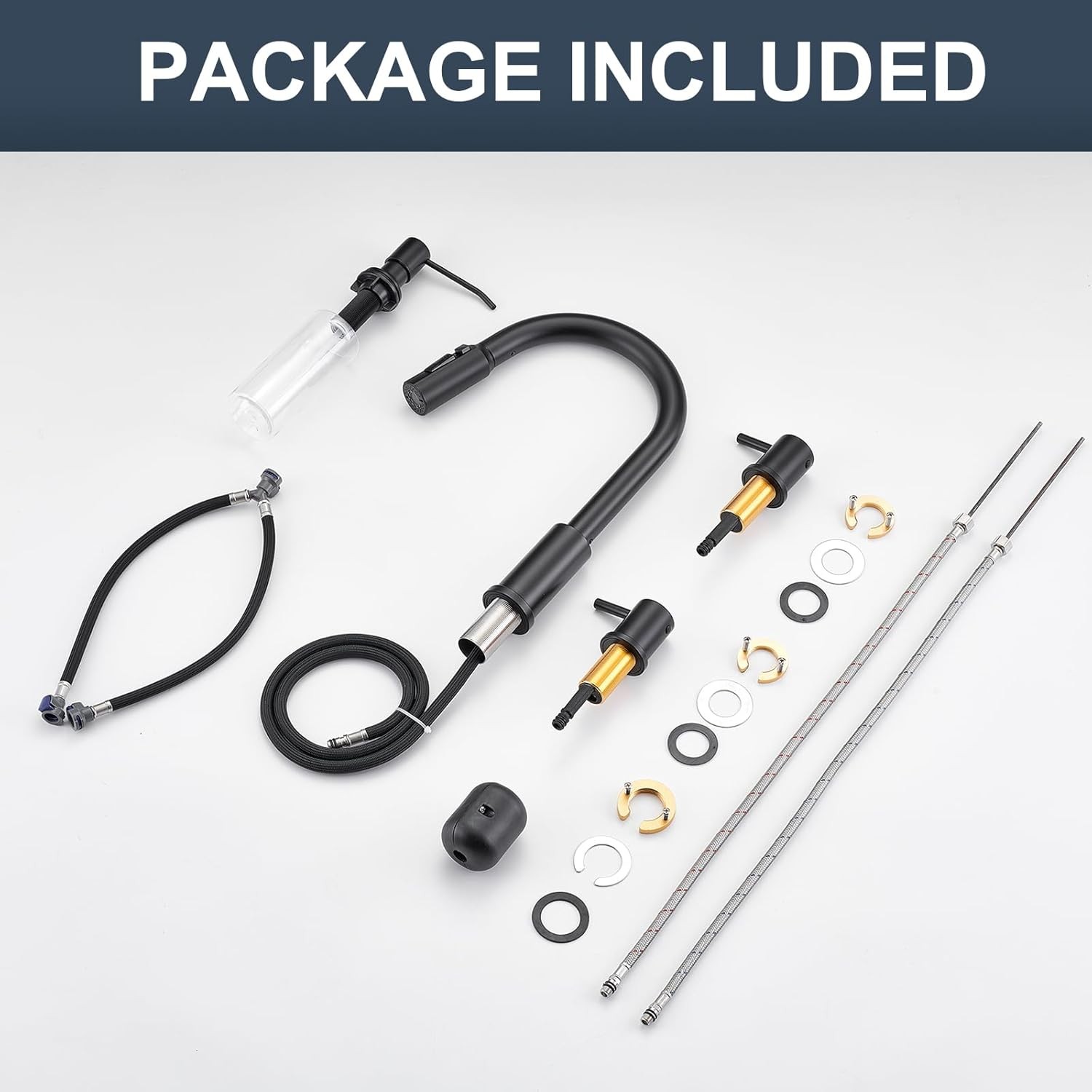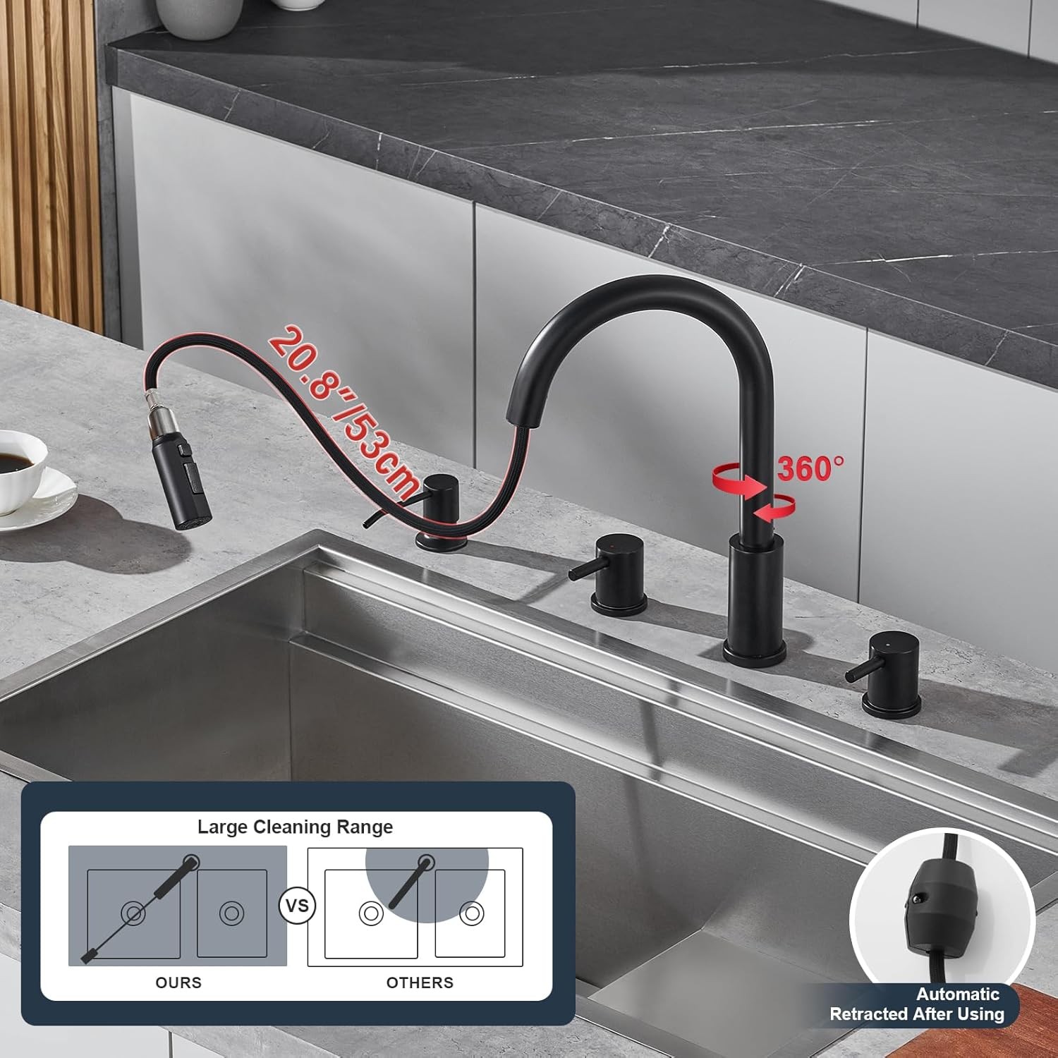 Tohlar 4 Hole Kitchen Faucet, Brushed Gold Faucet with Matte Black