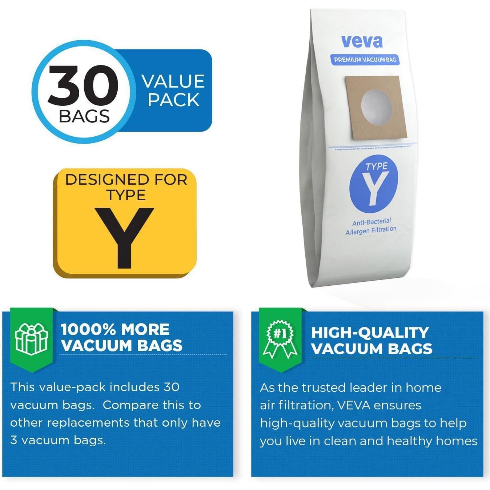 30 Pack Type Y Vacuum Bags for Hoover WindTunnel Style Y,Z,4010100 vacuum series