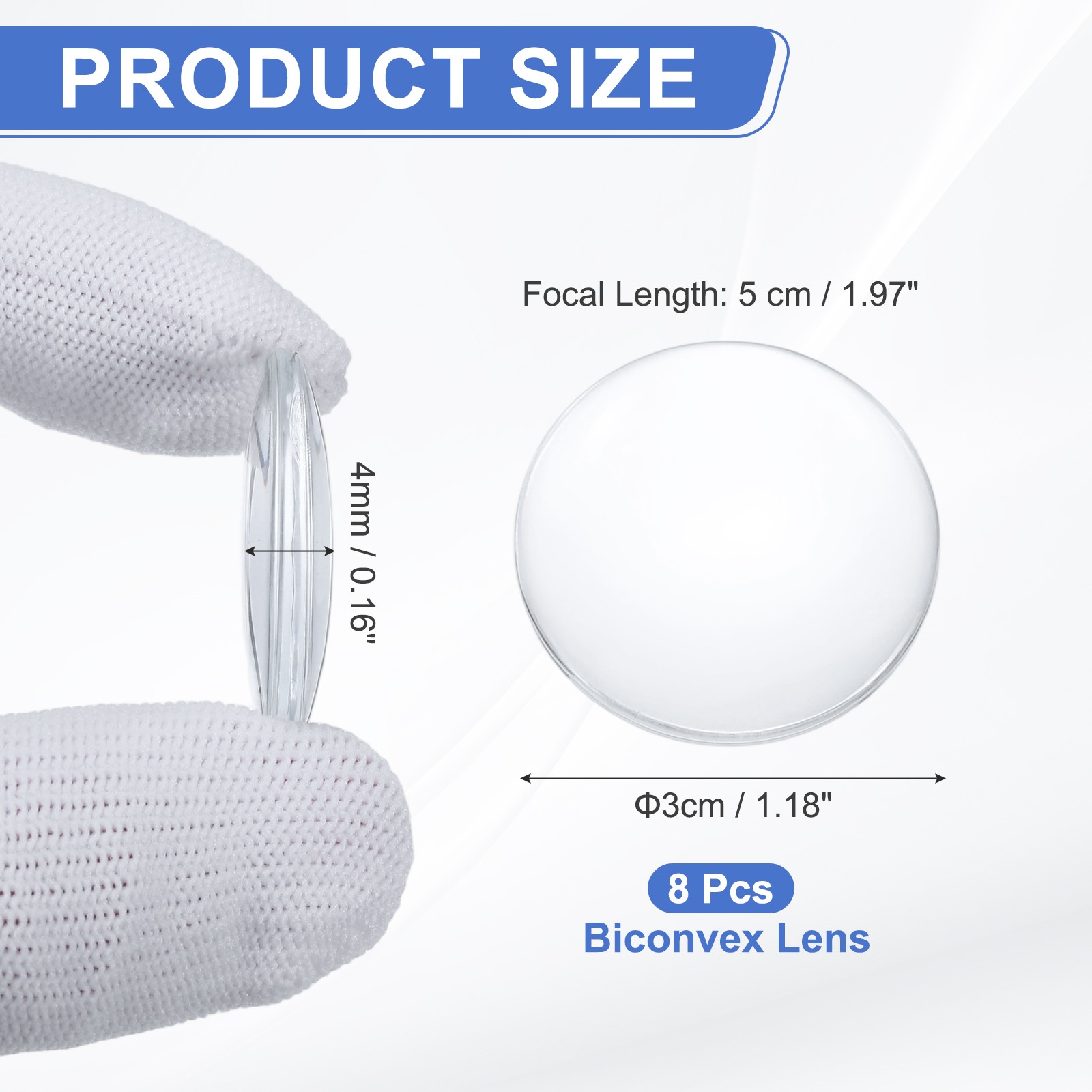 8 Pack Biconvex Lens, 3cm Dia. 5cm Focal Length Optical Lenses