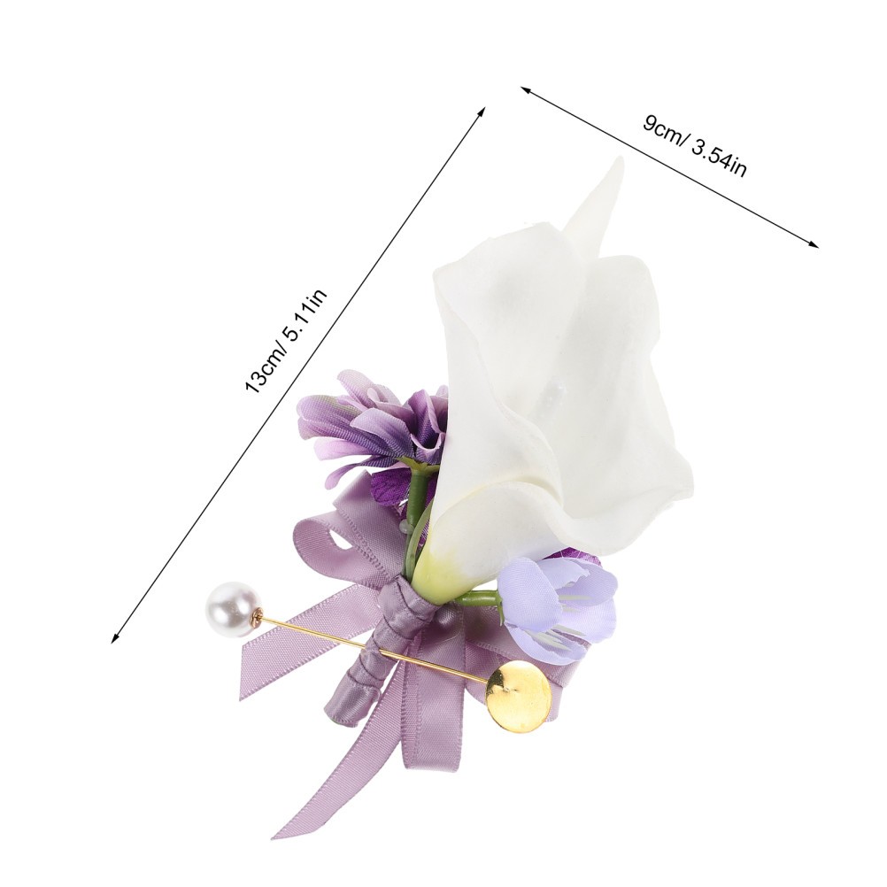 2 Pcs Calla Lily Corsage Purple Boutonniere for Men Brooch Lapel Pin