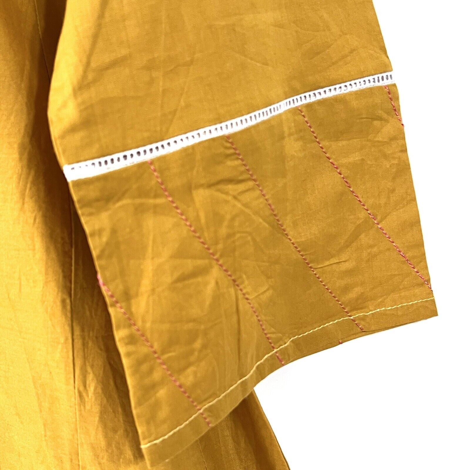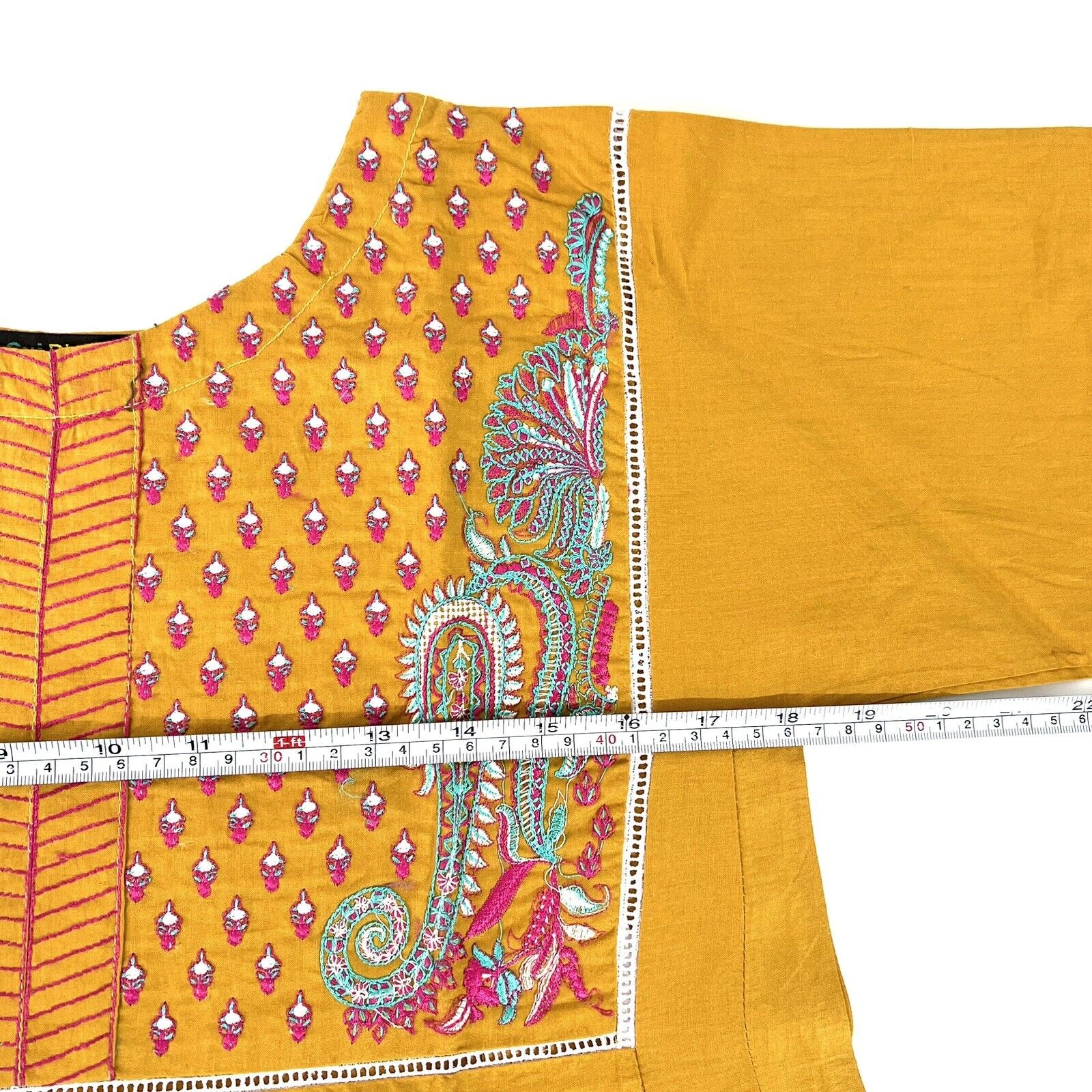 Women MEDIUM Yellow Pakistani/Indian Kurti Cotton Embroidered Paisley Shirt NWOT
