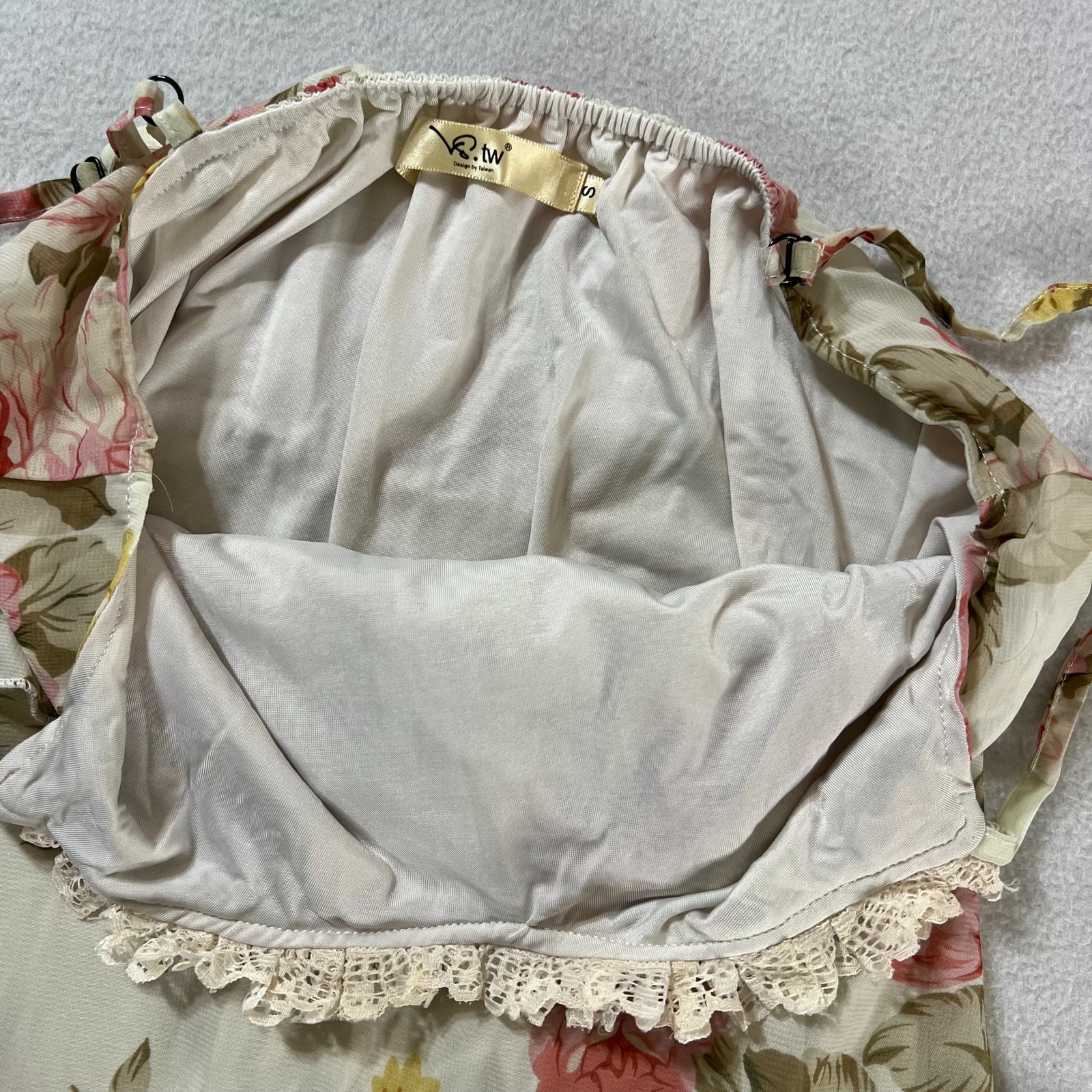 как выглядит Womens Floral Lace SMALL Maxi Dress Beige Multi Fit Flare Lined Sleeveless фото