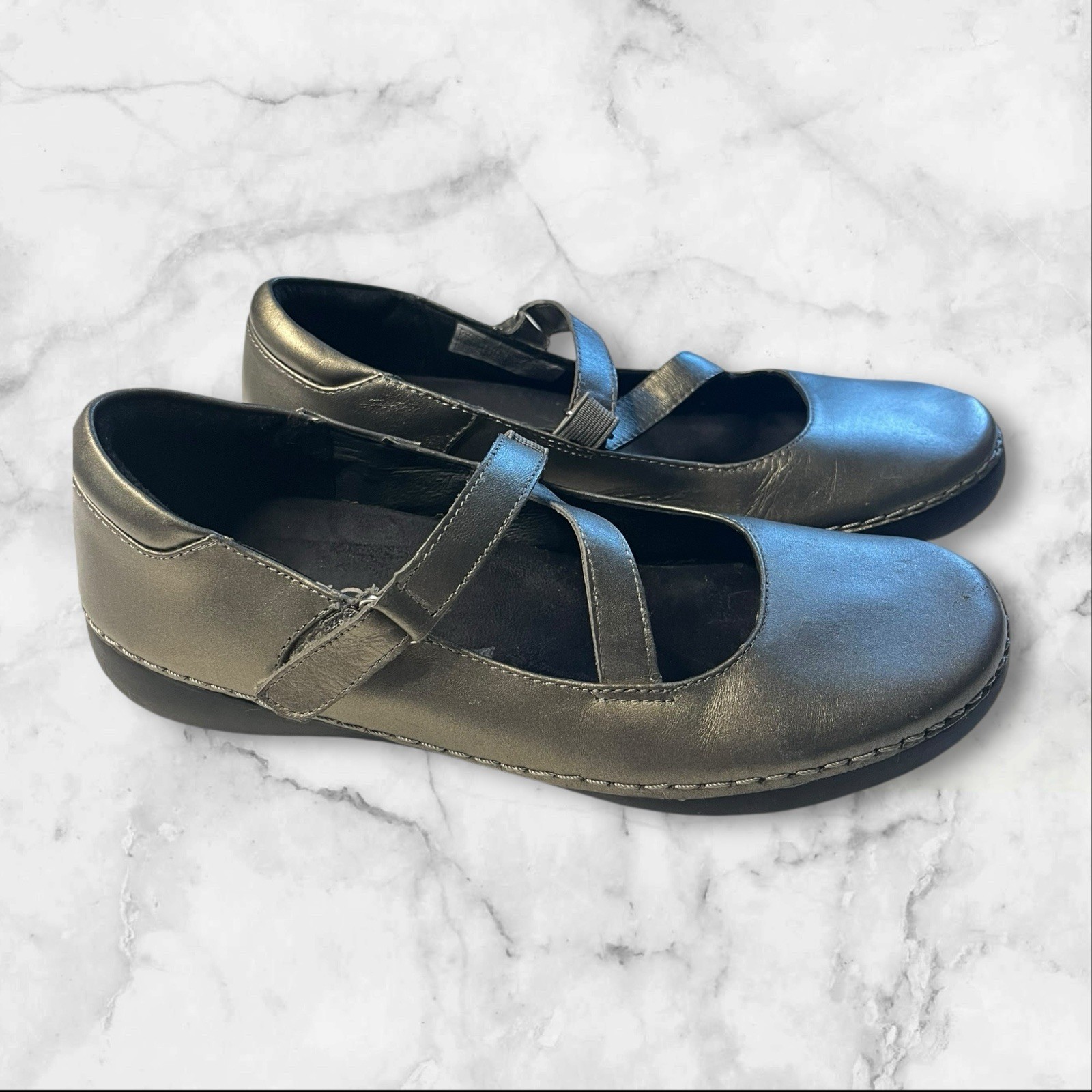 как выглядит Vionic Orthaheel Judith Shoes Won Size 7.5 Mary Jane Pewter Metallic Leather фото