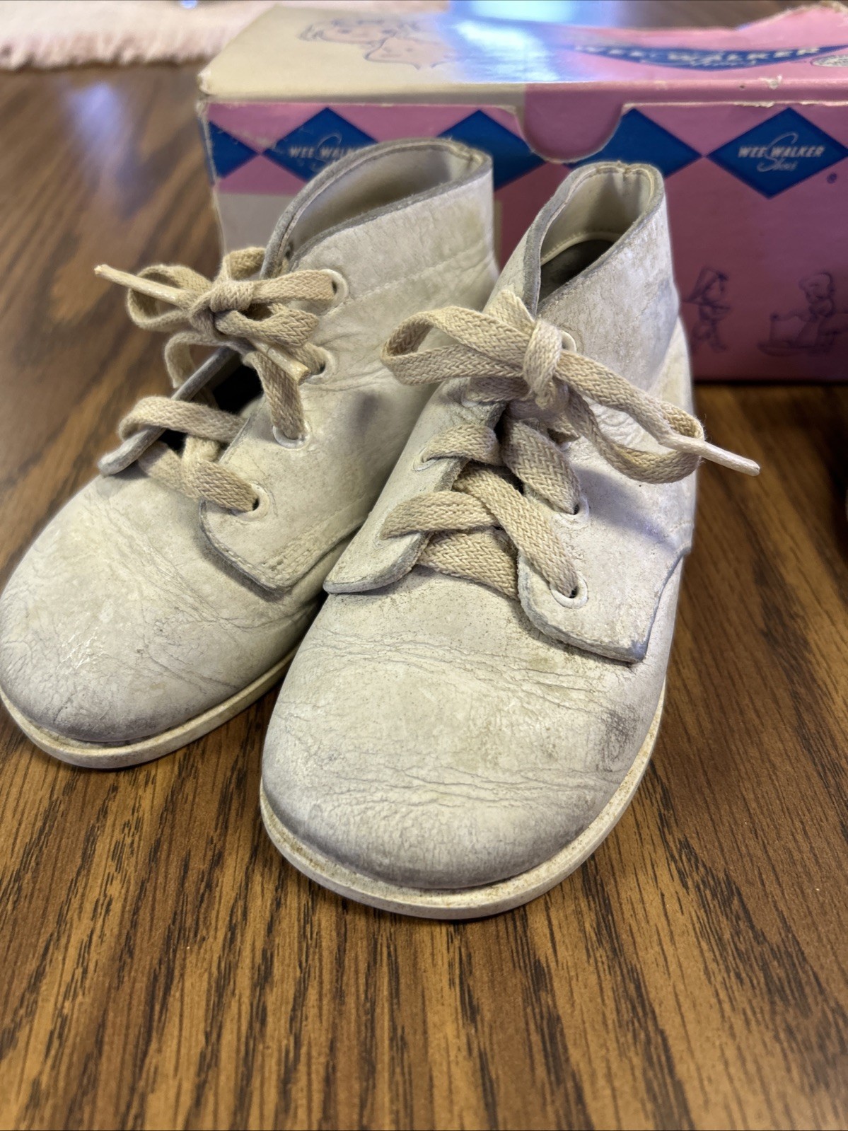 как выглядит Vintage Wee Walker Baby Shoes Lot Of 2 White With Box Size 2 Black Dress Shoes фото