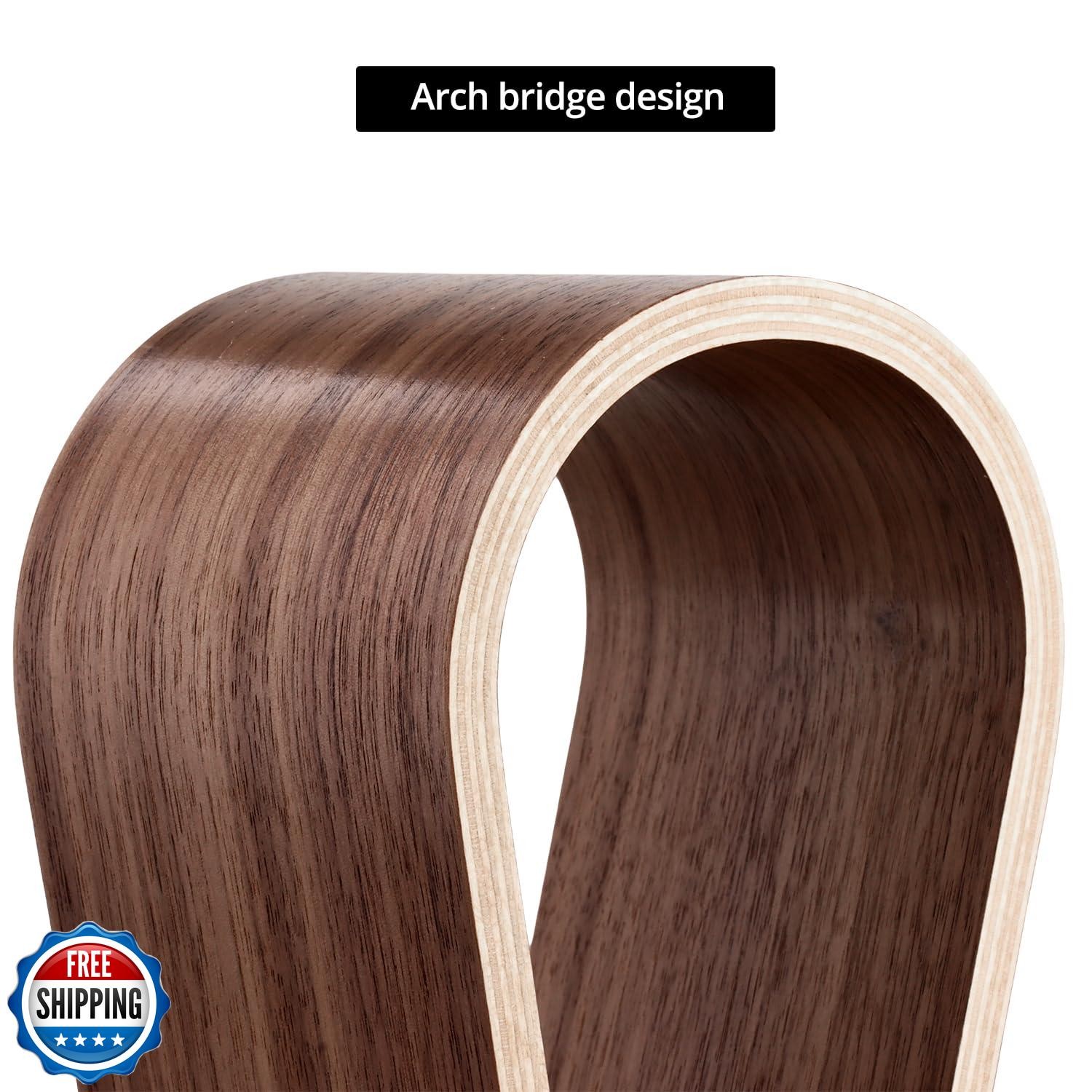 QWORK Wood Headphone Stand - Headset Holder, Arch Bridge Design -