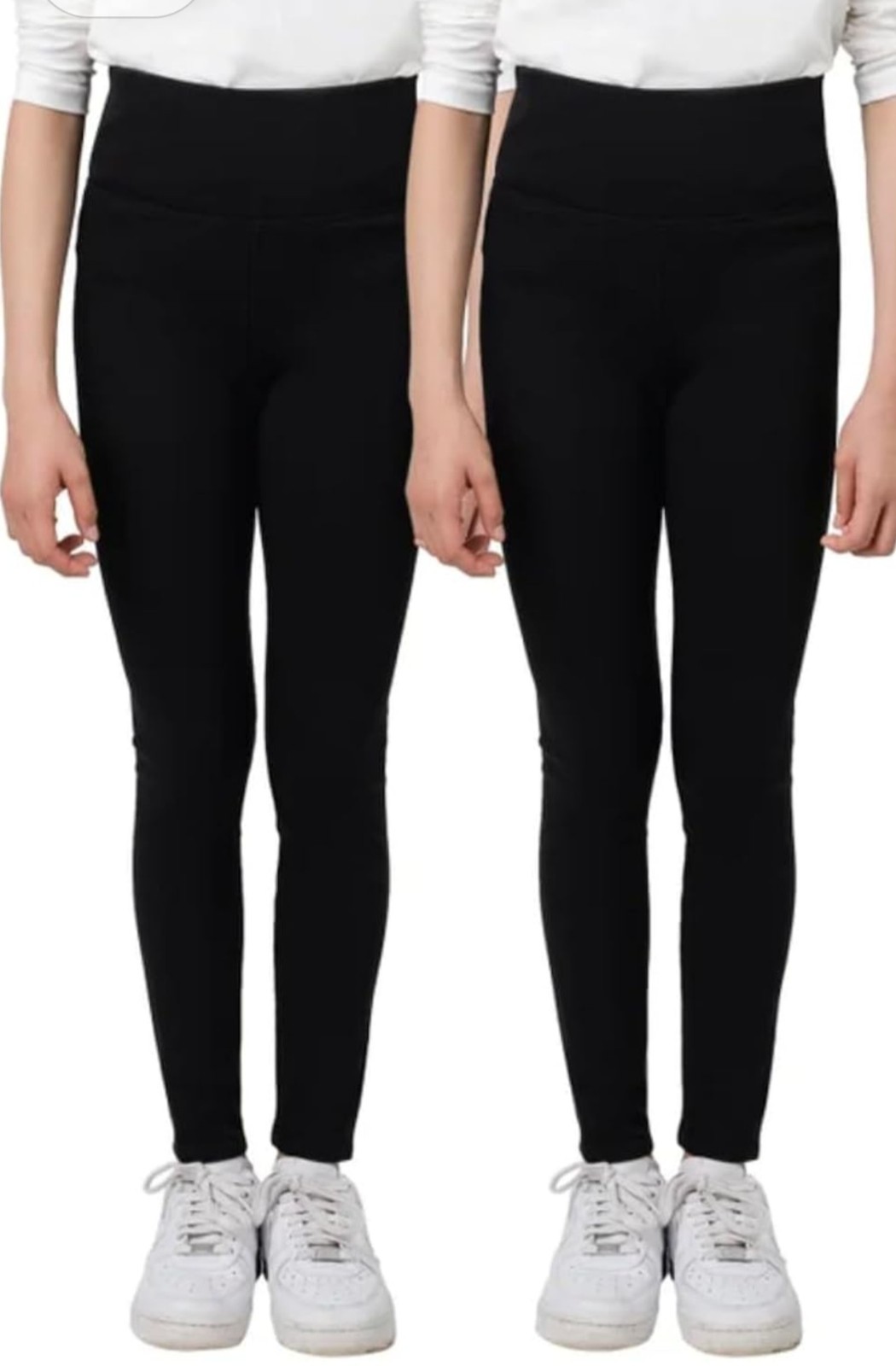 Tuff Athletics youth girls 2 pack Fleece lined Leggings Small 7/8 Black