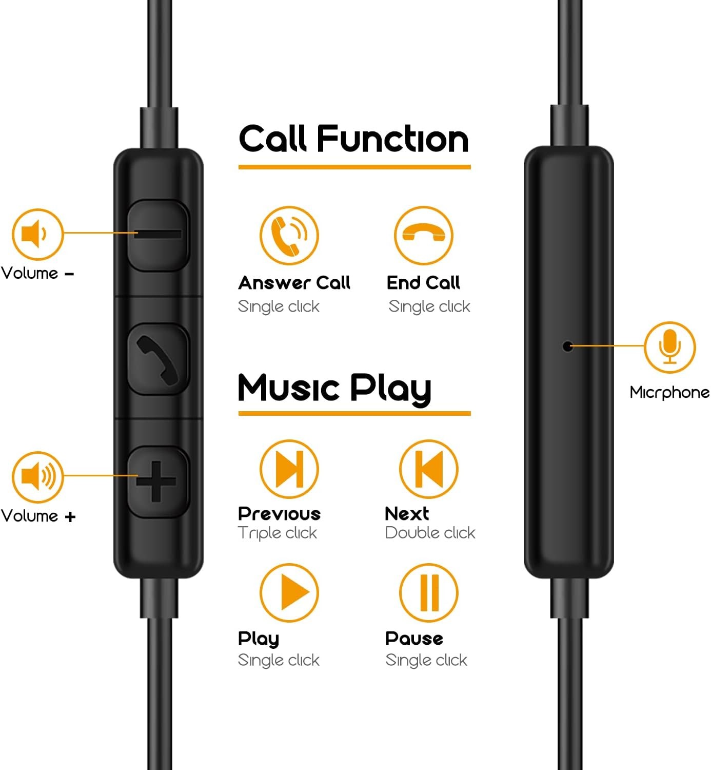 Wired Earphones in Ear Headphones Earbuds for iPhone 13 12/12 1 pack-black