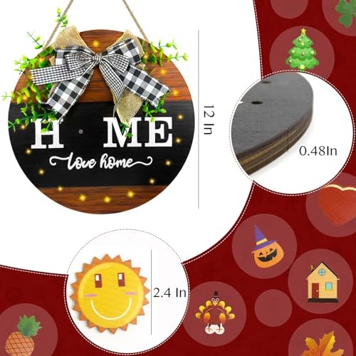 Interchangeable Seasonal Welcome Sign Front Door Decoration with 13 Changeable