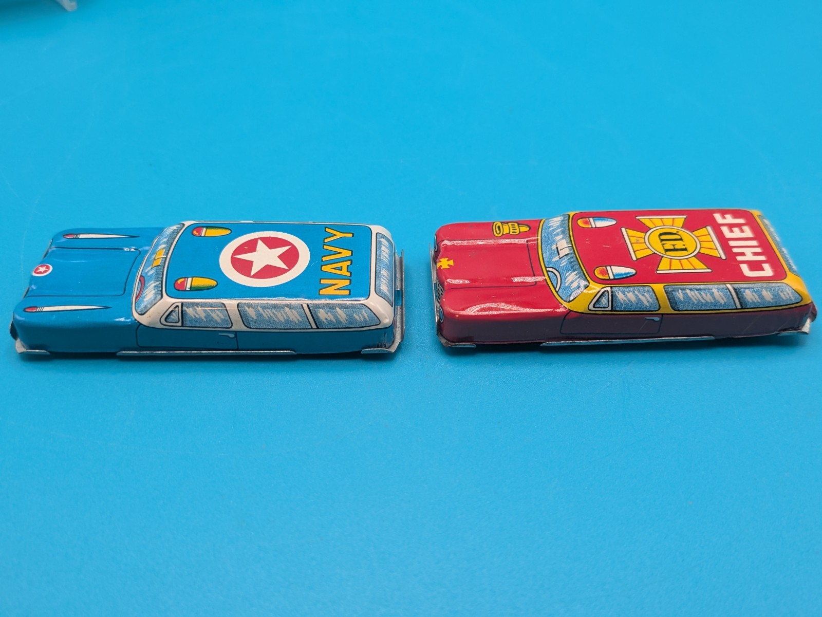 Vintage Japan Tin Car Toy Lot of 5 Navy Fire Police Taxi Ambulance