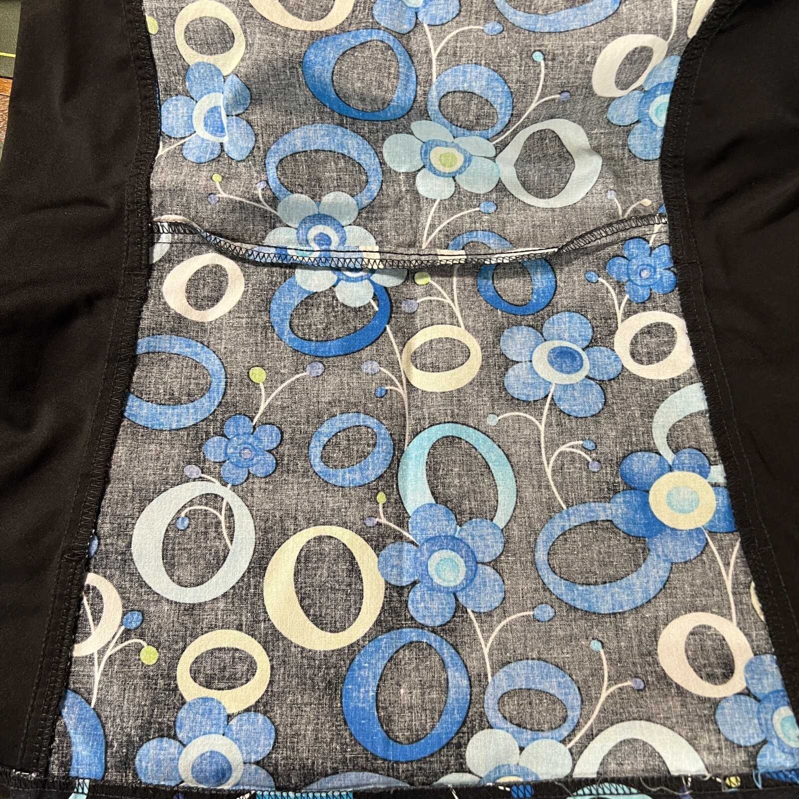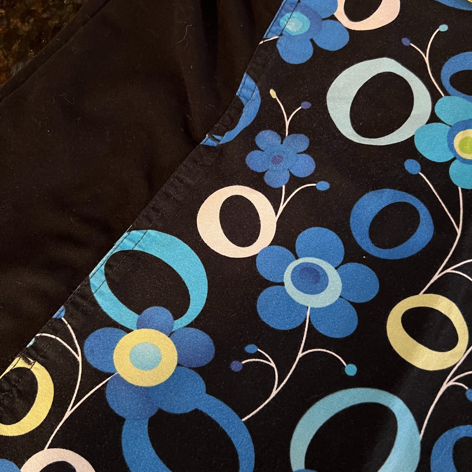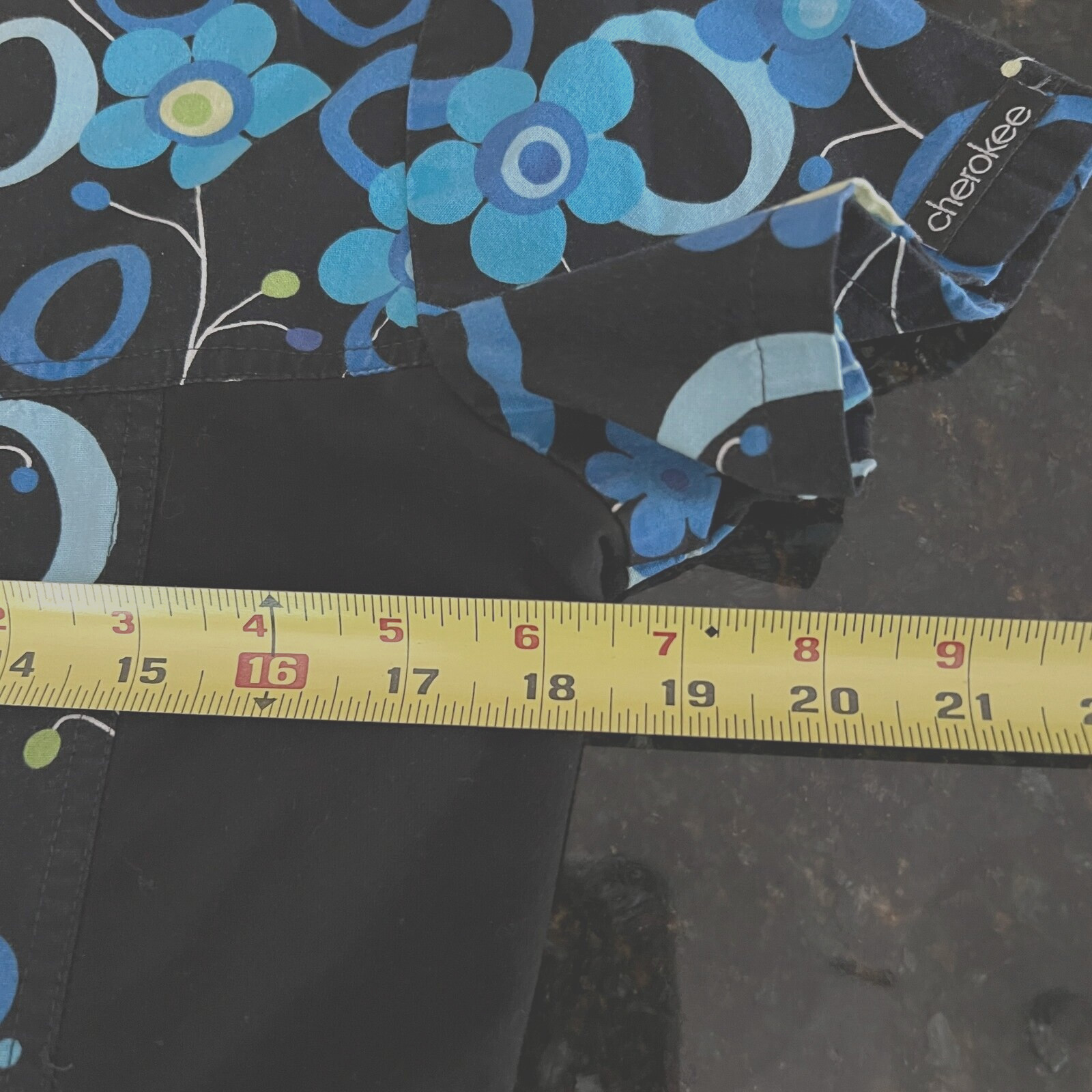 как выглядит Cherokee Womens Scrub Top Size S Blue Black Floral Pockets V neck Short Sleeves фото