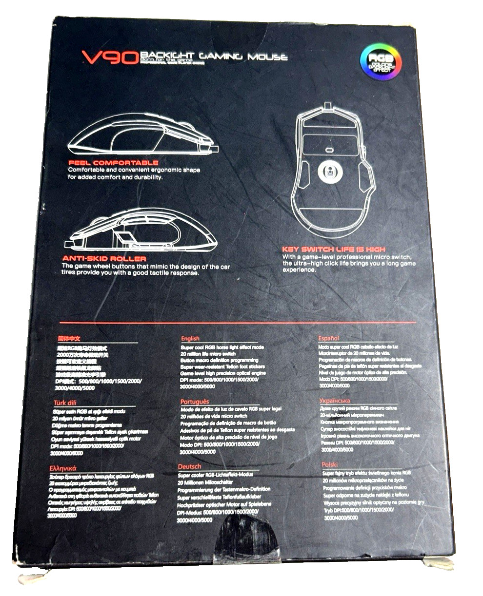 V90 Backlight Gaming Mouse RGB Optical USB Wired Gamer Mouse New