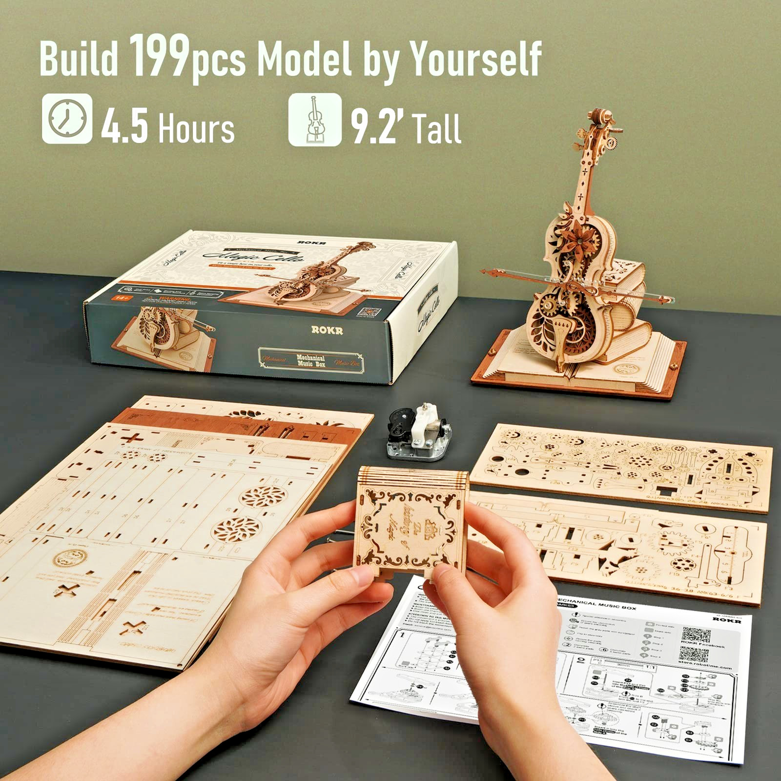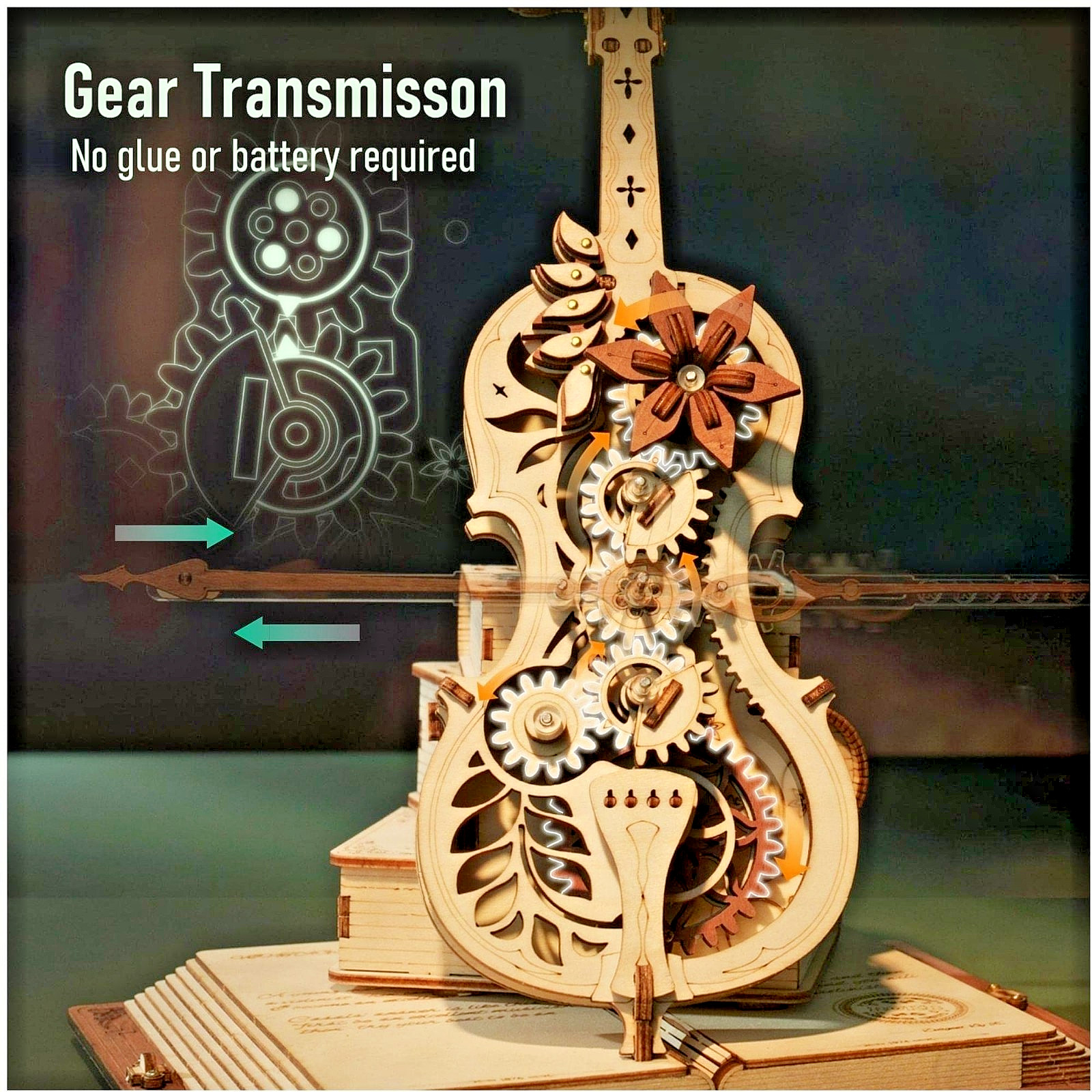 Robotime ROKR Magic Cello 3D Wooden Puzzle DIY Mechanical Music Box Xmas Gift
