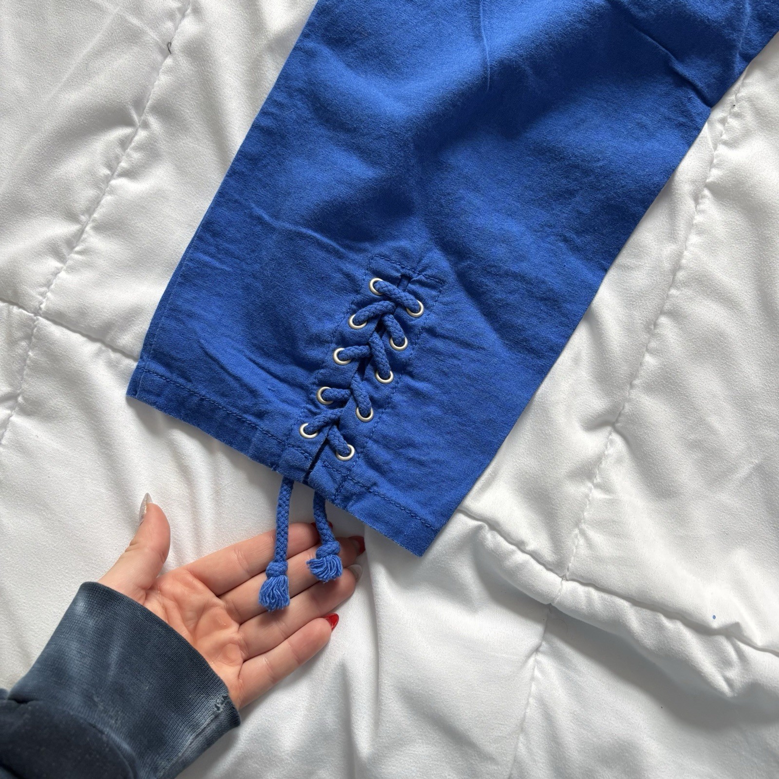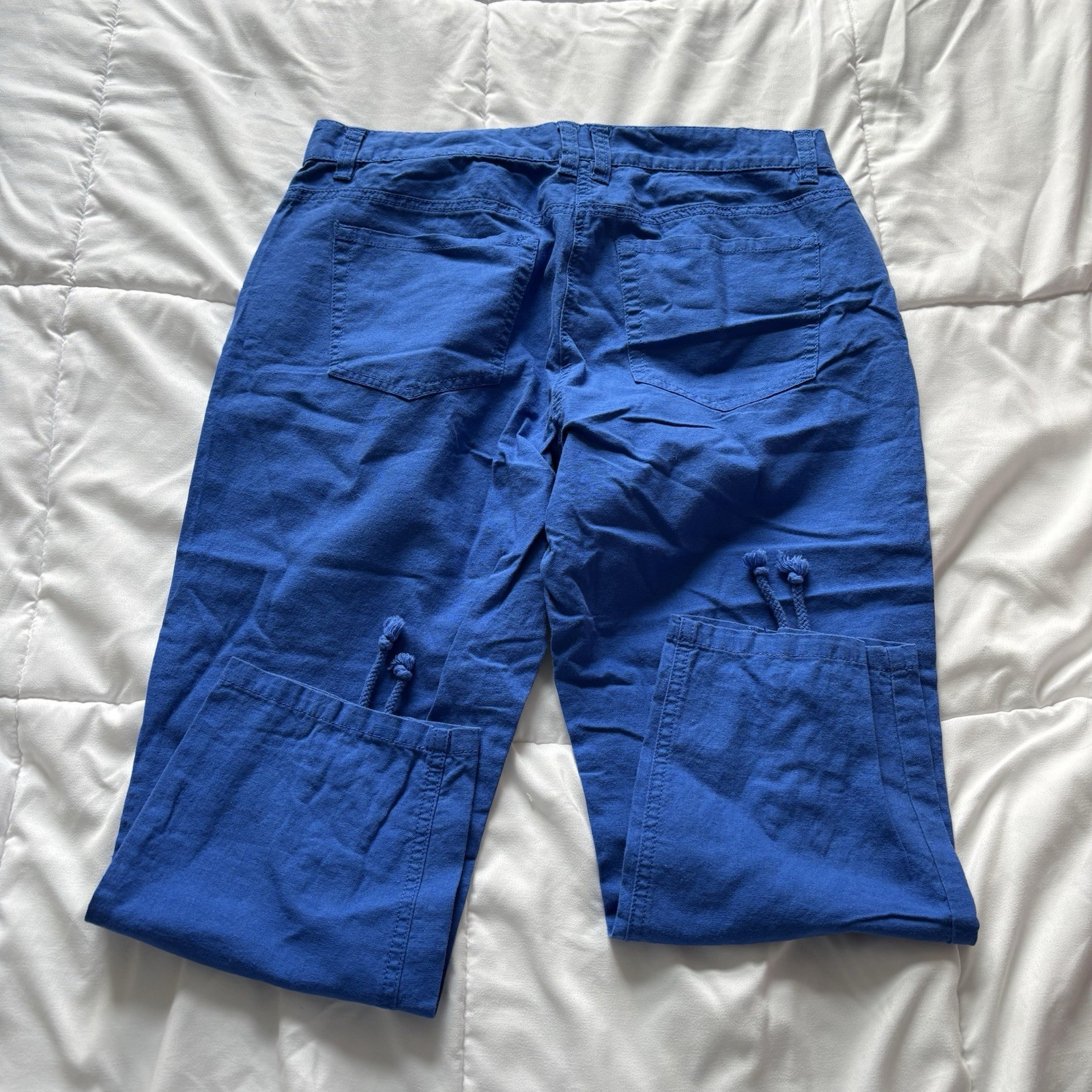 как выглядит Vintage 90s Y2K Hip Hop Womens Size 8 Blue Capri Pants Casual Linen Blend Beach фото