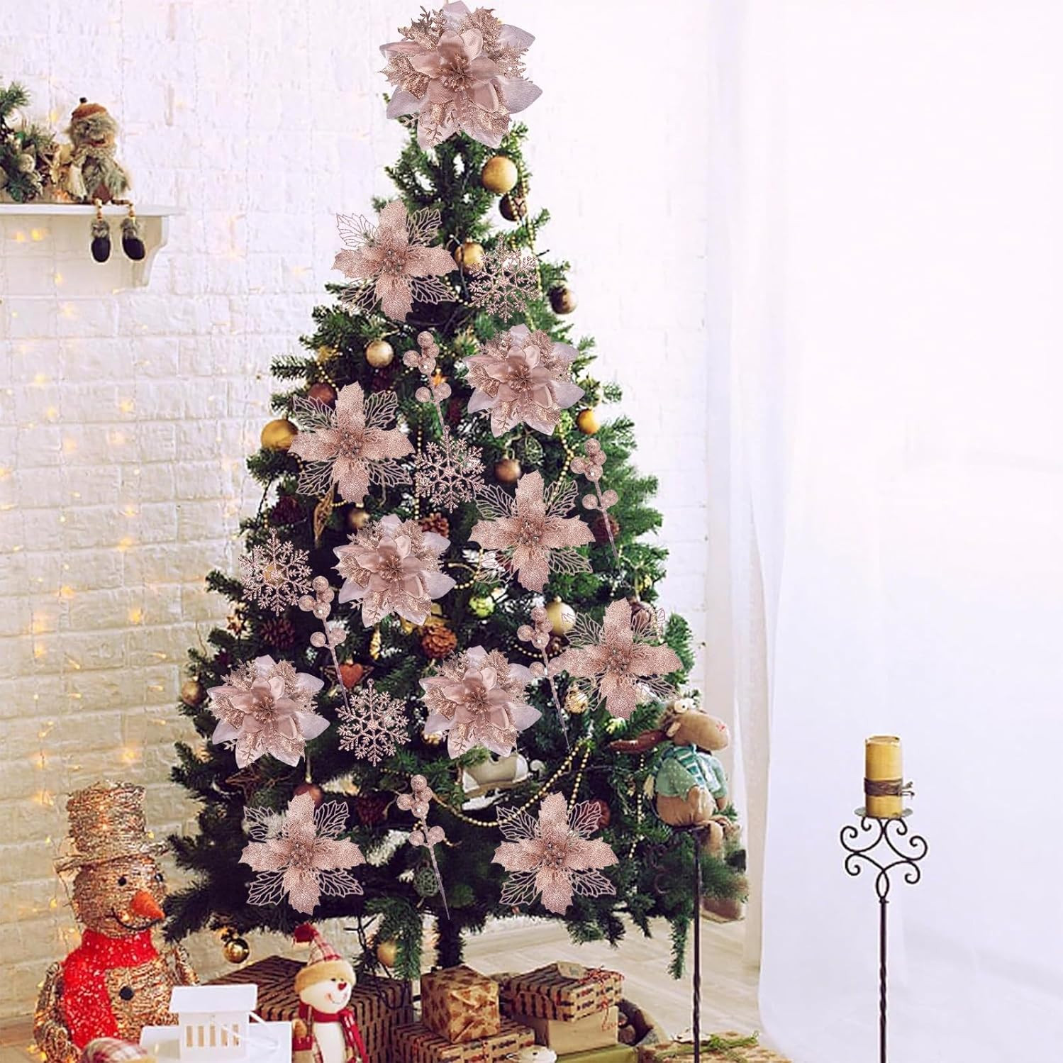 59PCS Rose Gold Christmas Tree Decorations Set, Artificial Christmas Picks