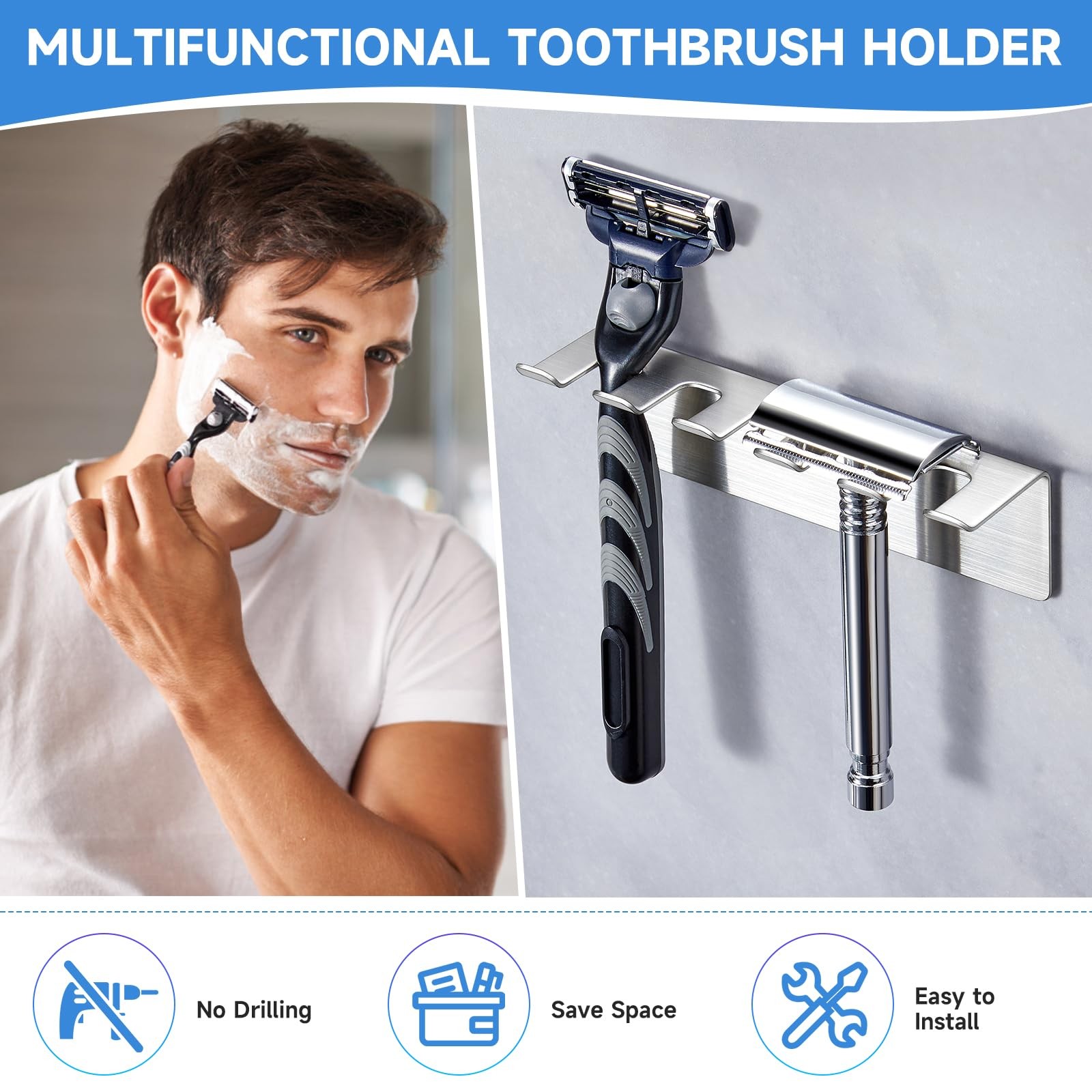 Toothbrush Holders Wall Mounted, Stainless Steel Toothbrush Holder, Electric ...