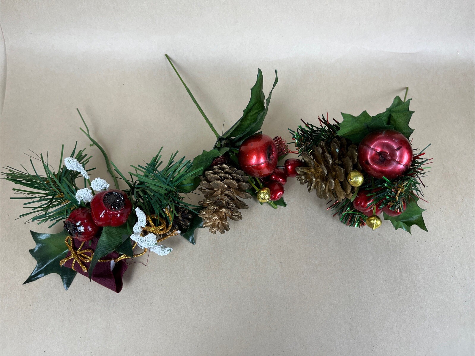 как выглядит Lot Of VTG Holly Berry Fruit Pinecone Pick Floral Holiday Christmas Decoration фото