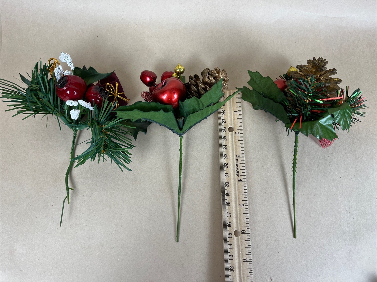 Lot Of VTG Holly Berry Fruit Pinecone Pick Floral Holiday Christmas Decoration