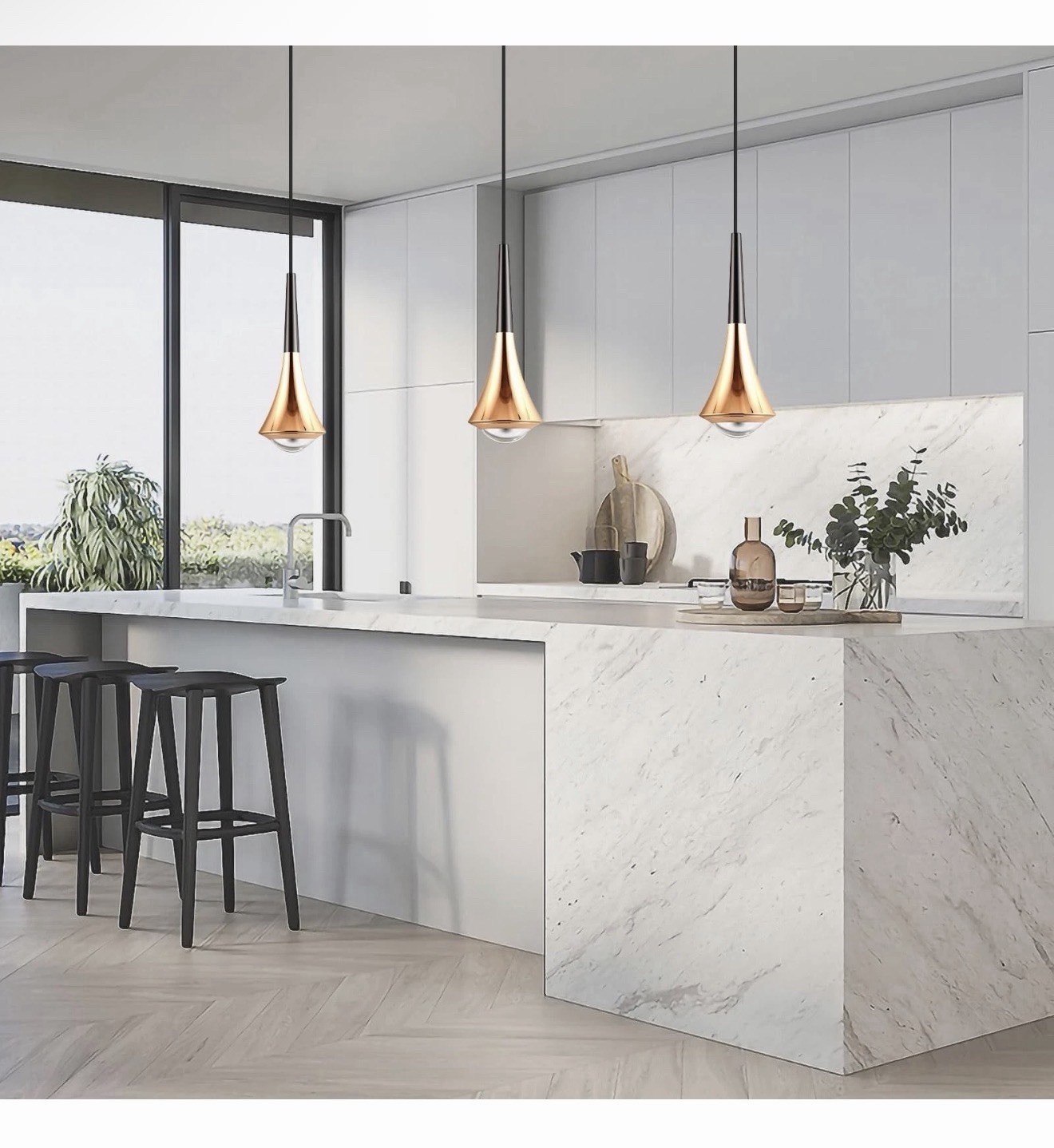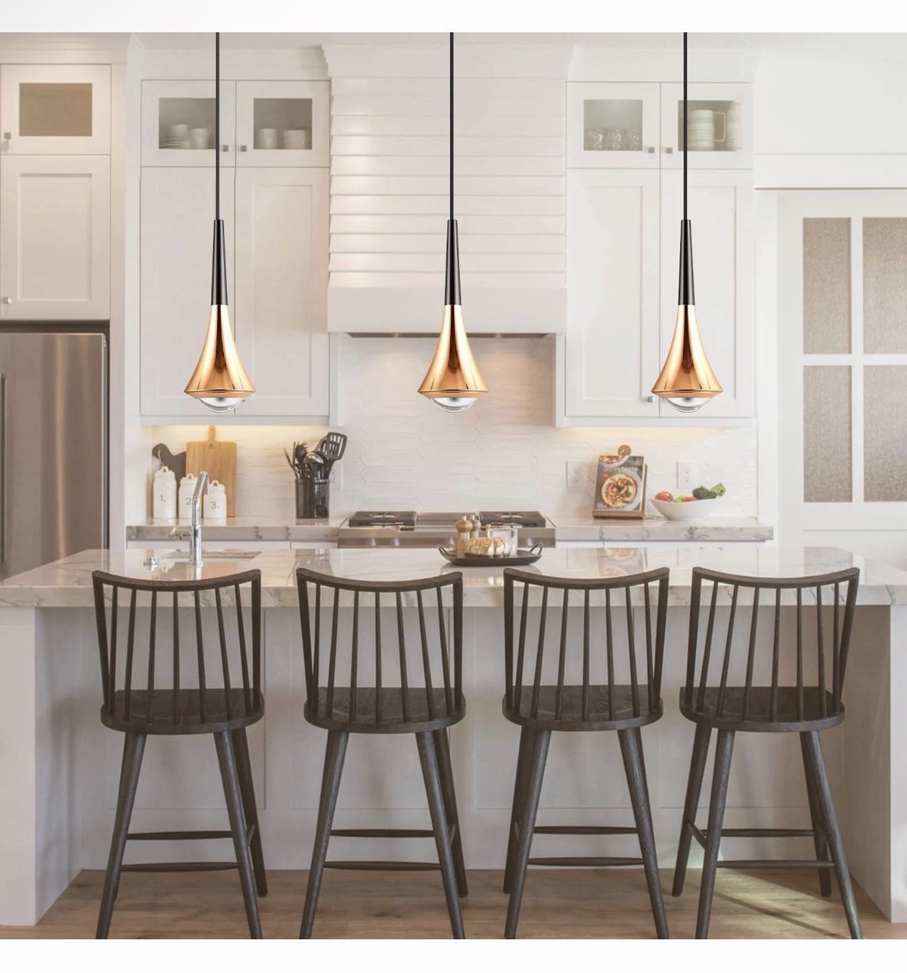 как выглядит Hinio Modern Adjustable Pendant Lights Kitchen Island Gold Black 2-Pack фото