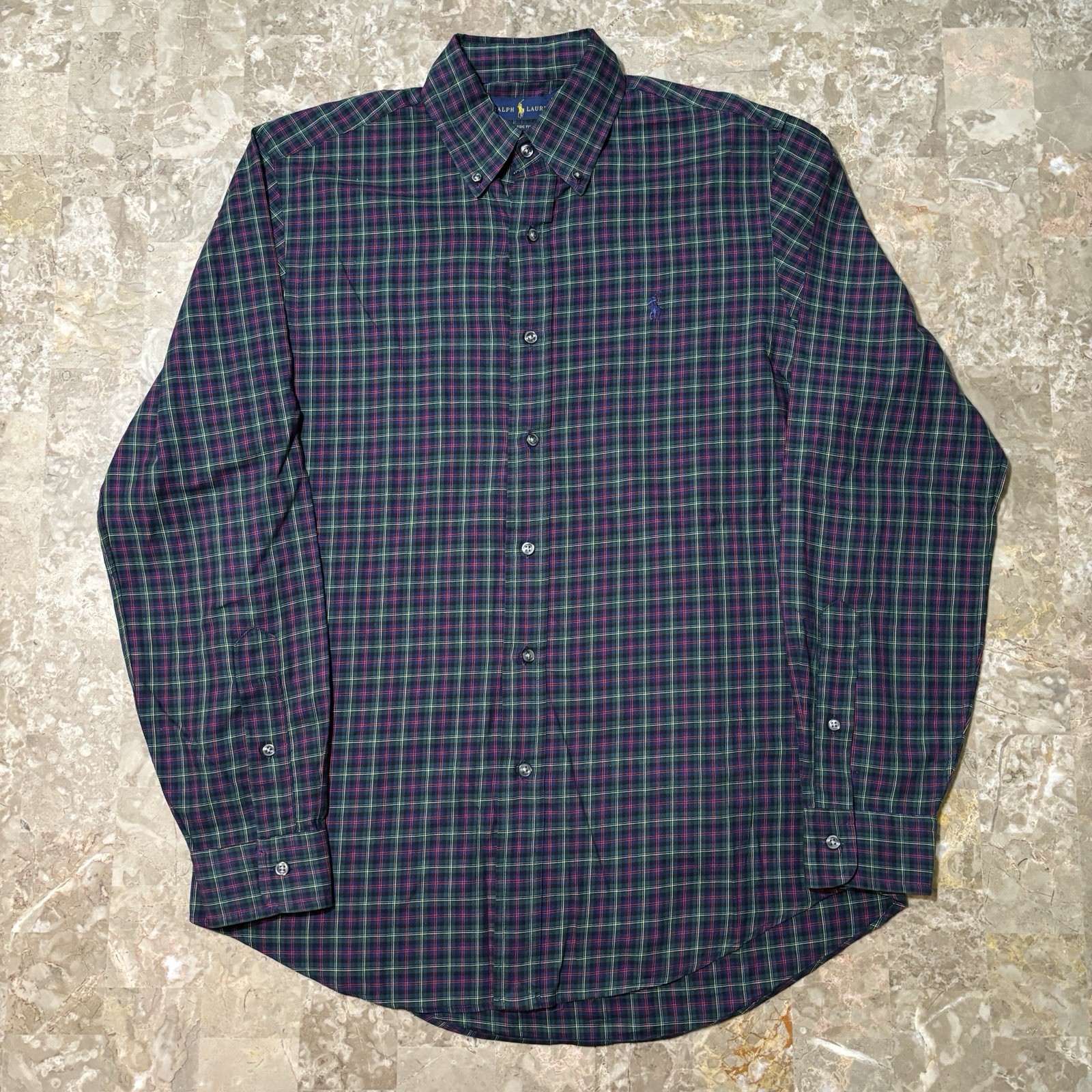 Polo Ralph Lauren Shirt Mens Small Green Long Sleeve Button Windowpane Check