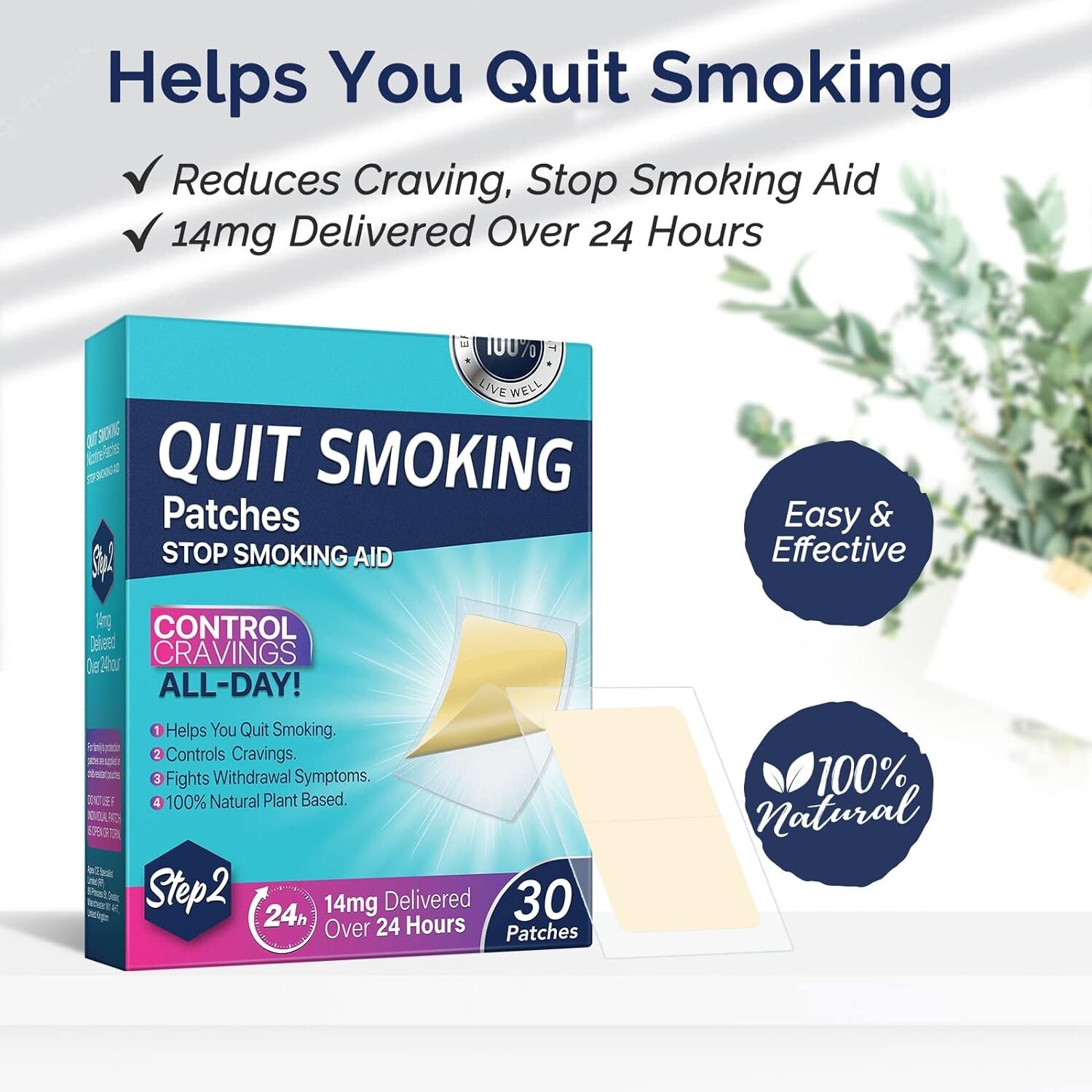 Step 2 Nicotine Patches - 30 Transdermal Stick-on Patches to Quit Smoking