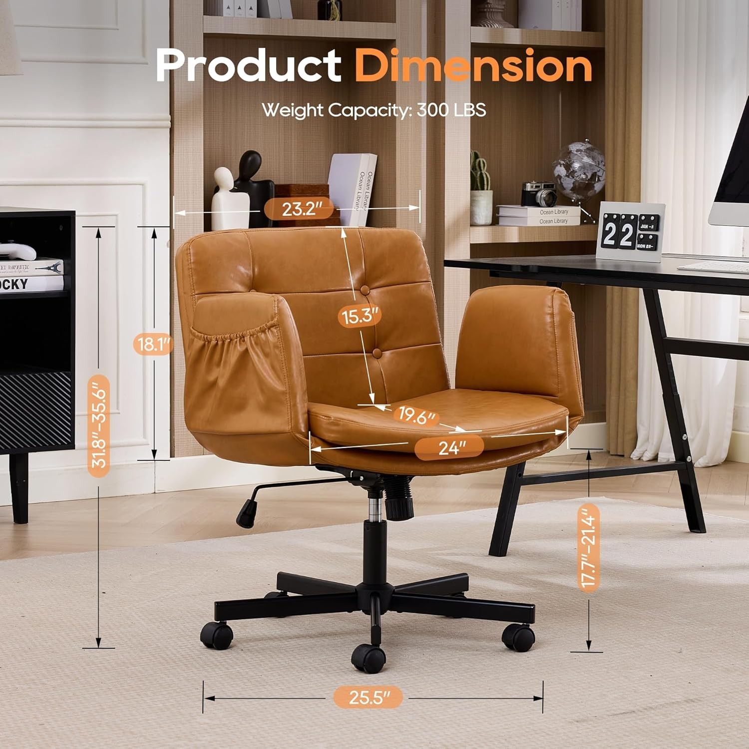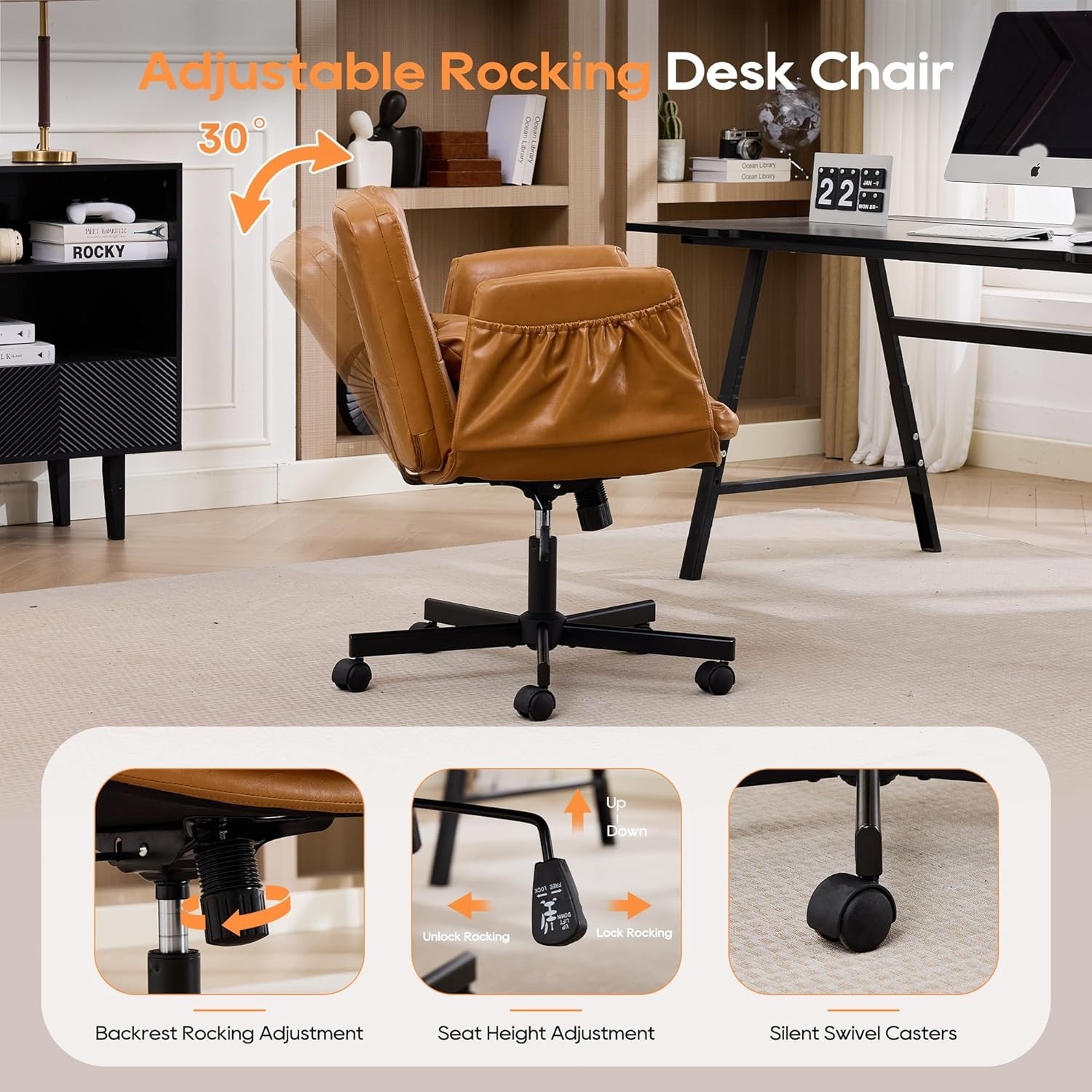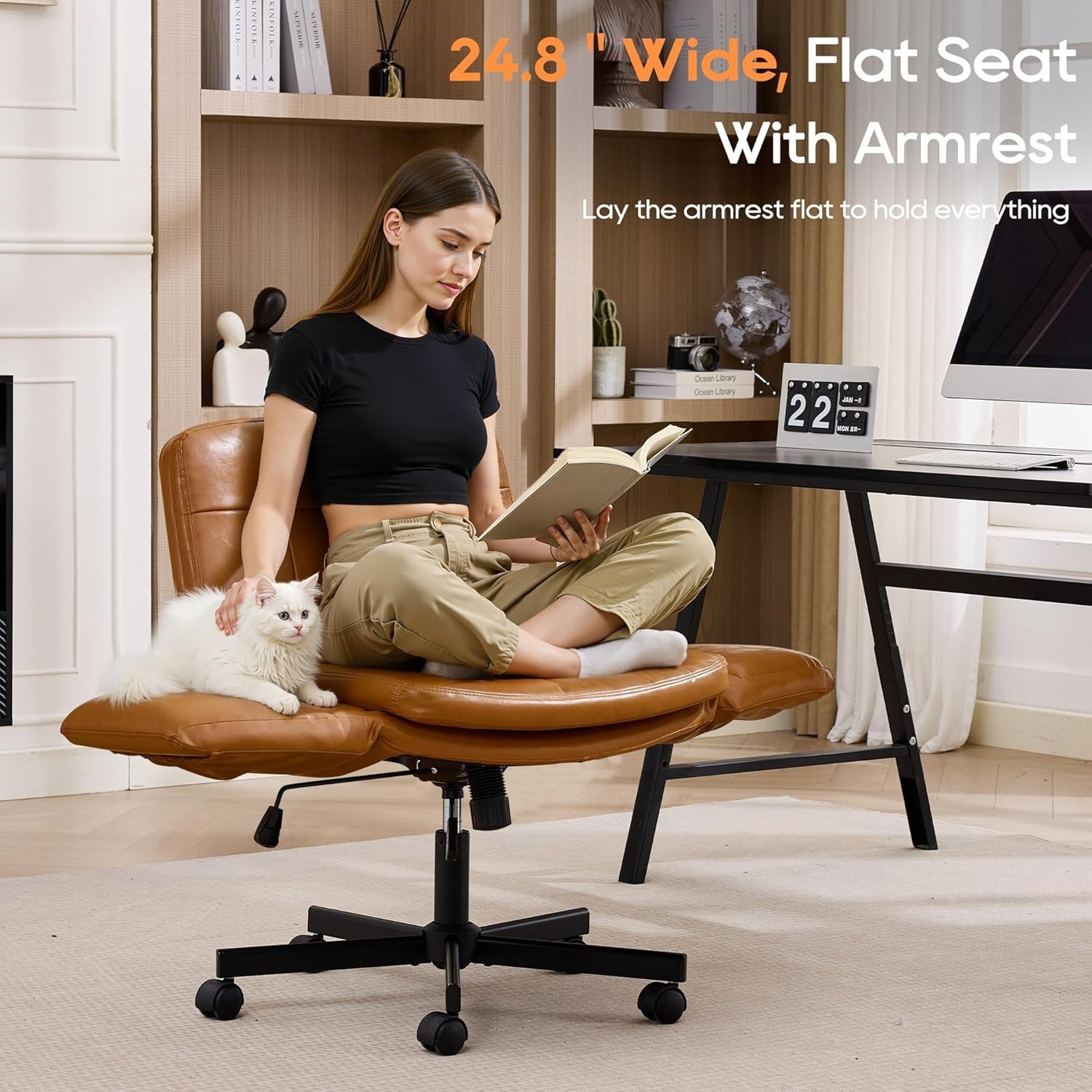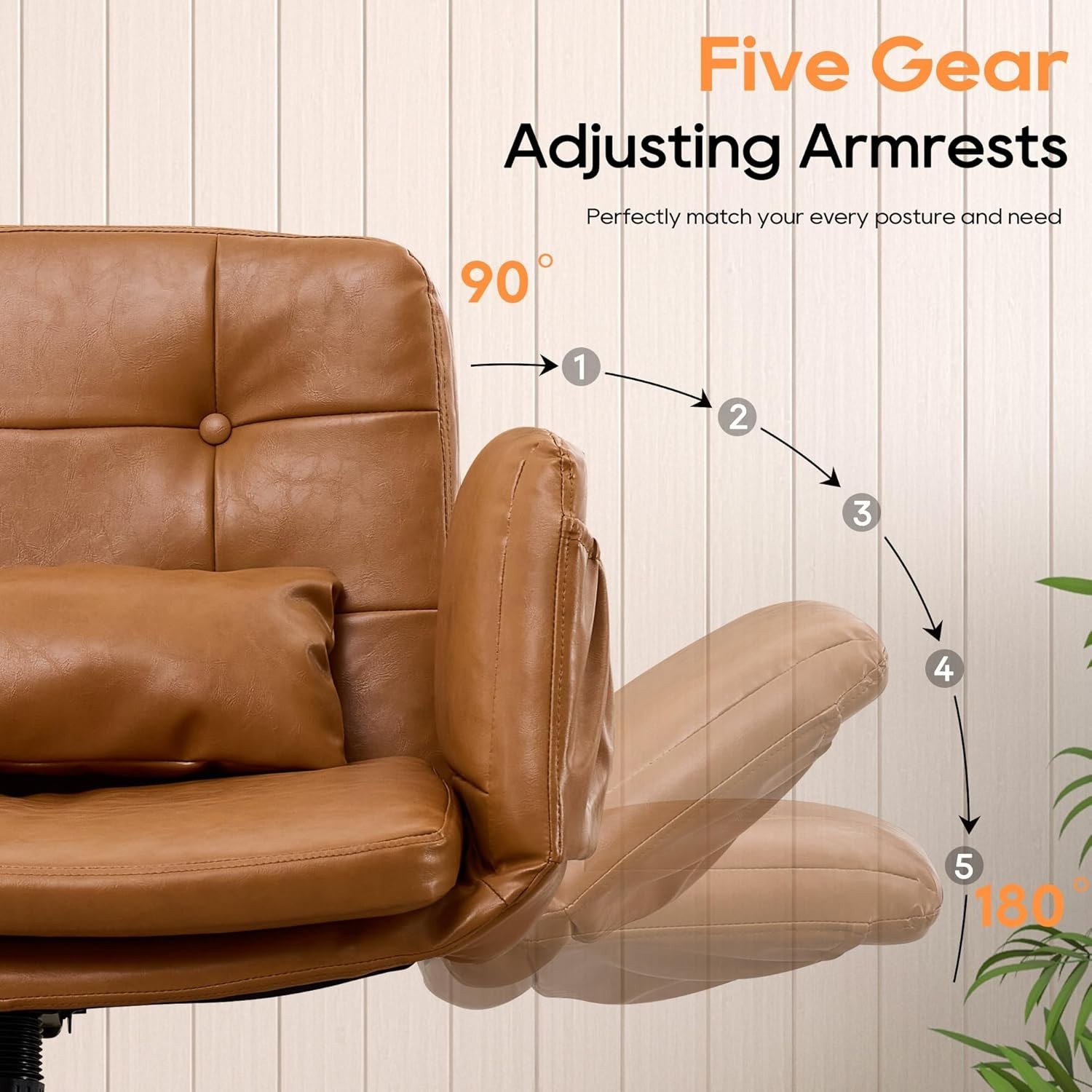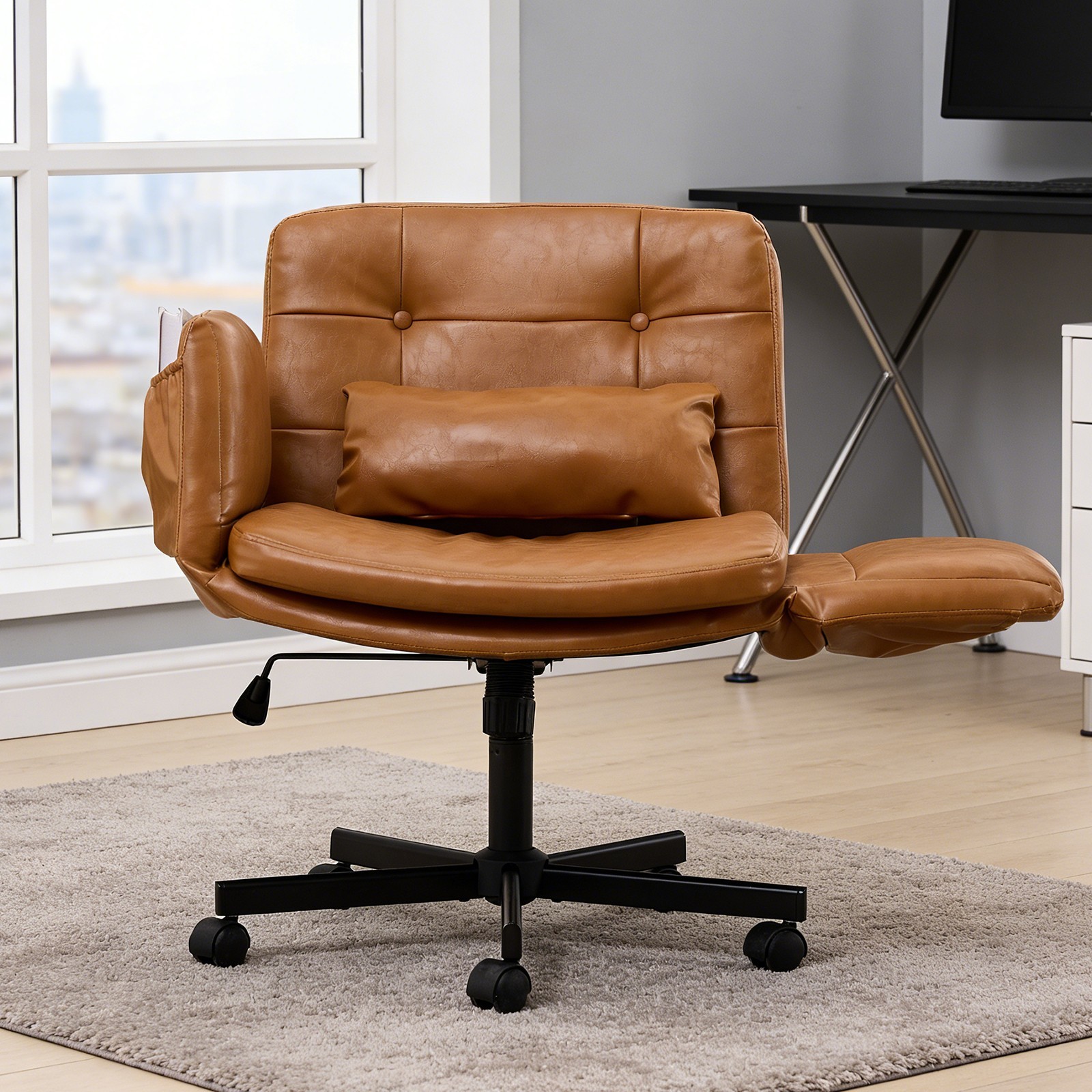 Home Office Chair Criss Cross Swivel Chair with Wheels 5-Level Adjustable Arms