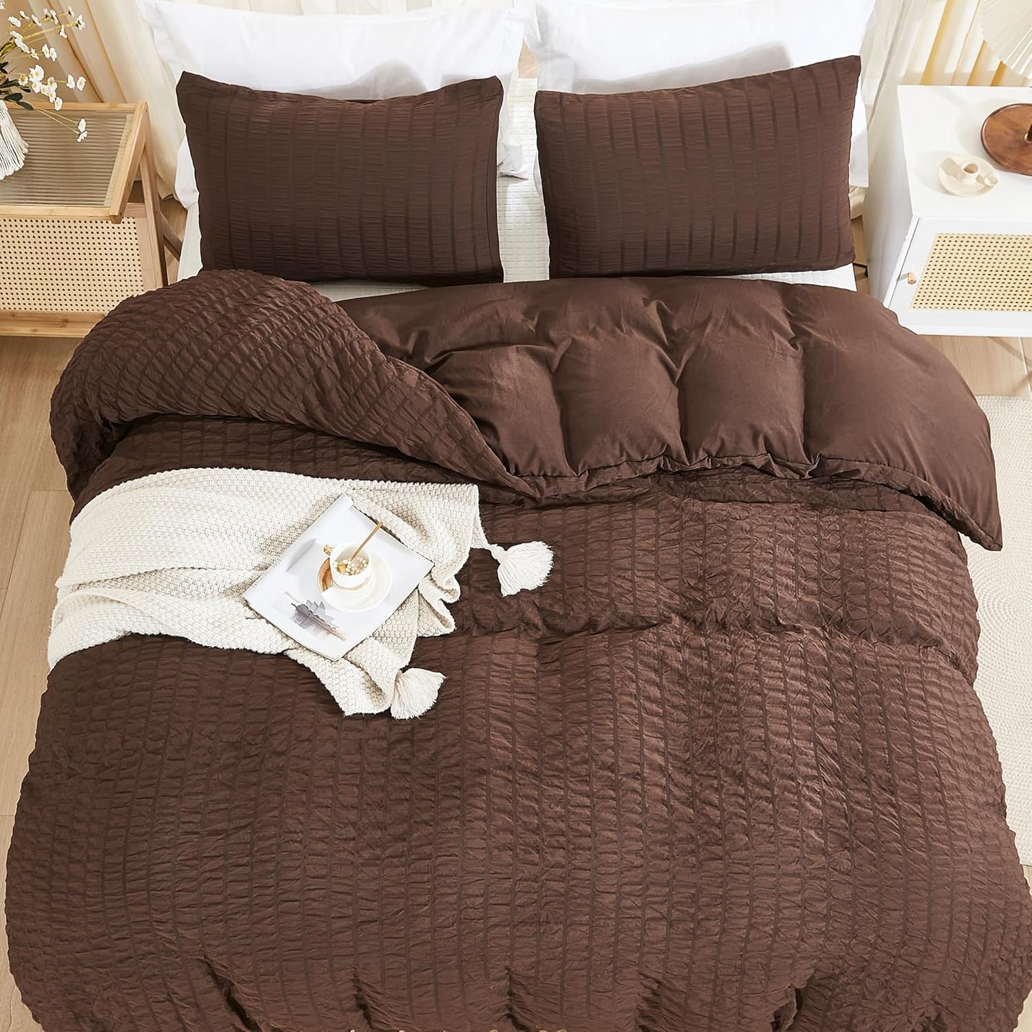 как выглядит Seersucker Duvet Cover Set Queen Size 90 X 90 Inches , 3 Pieces 1 Duvet Cover, фото