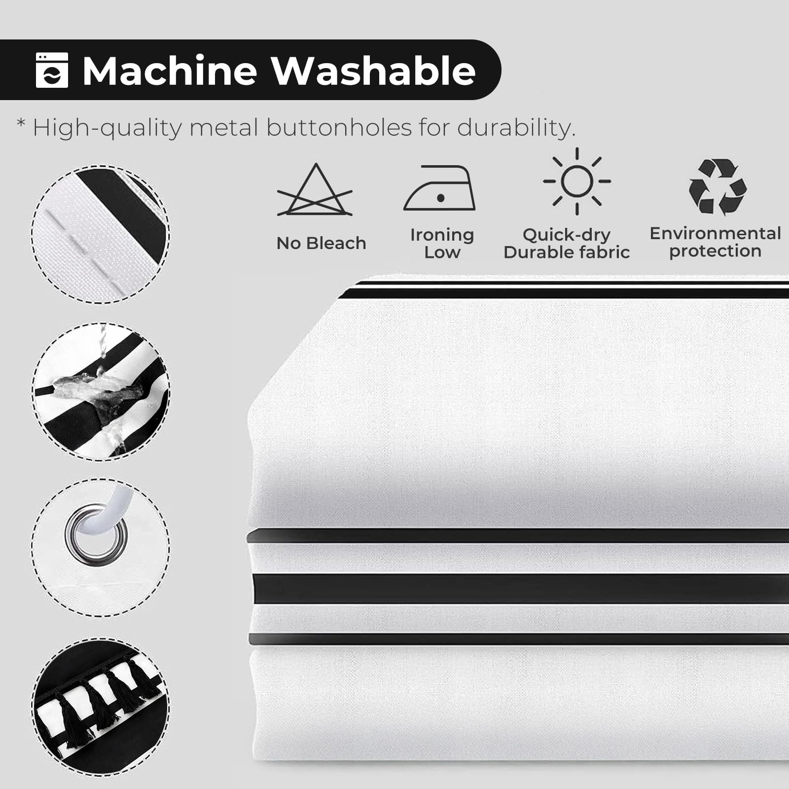 Black and White Shower Curtain Farmhouse Shower Curtain Striped Shower Curtai...