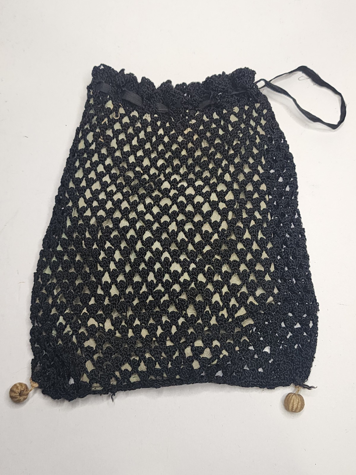 Vintage Victorian Crochet Knit Lined Drawstring Handbag Purse