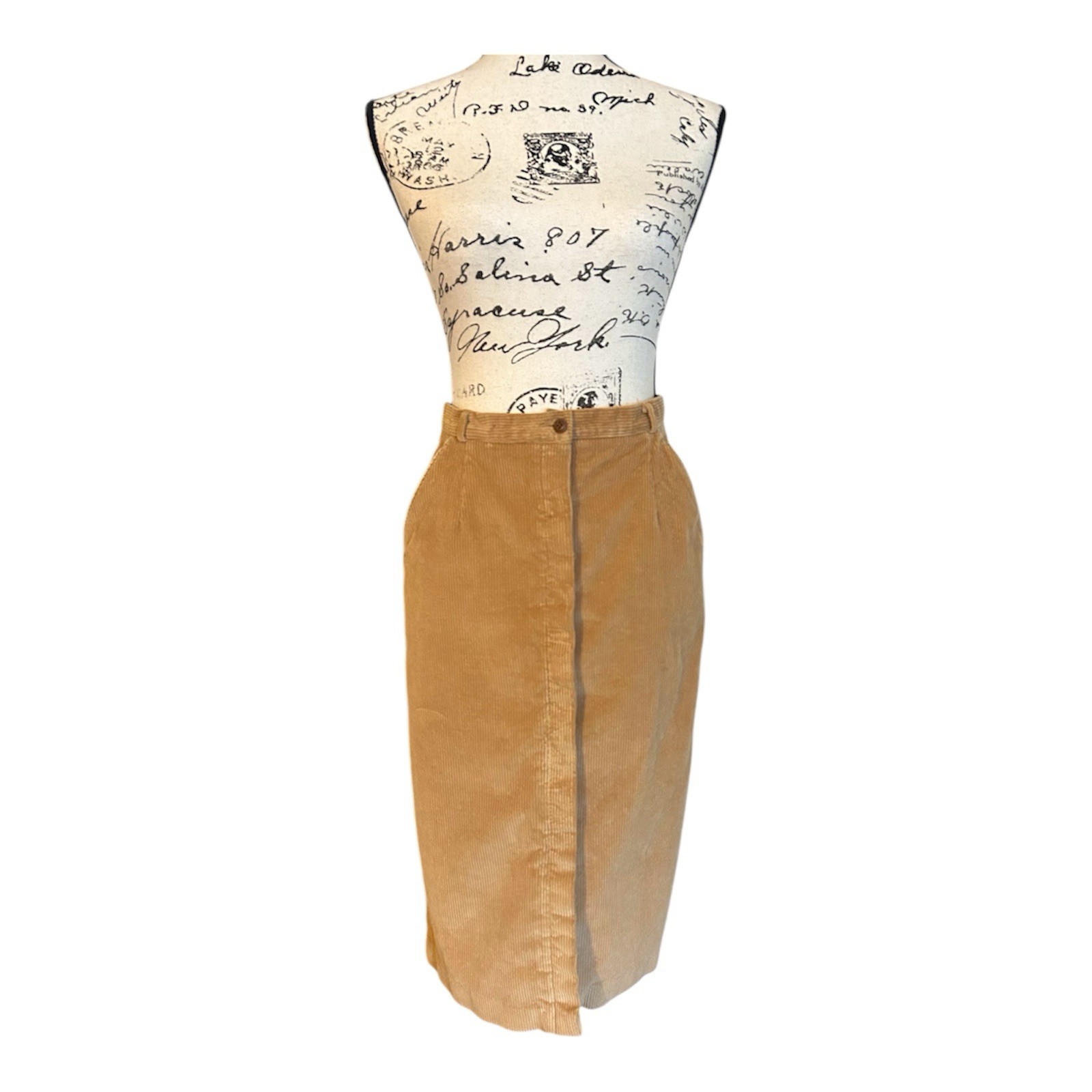 VTG 70s Camel Colored Corduroy Ribbed Pencil Skirt With Pockets Full Button Up