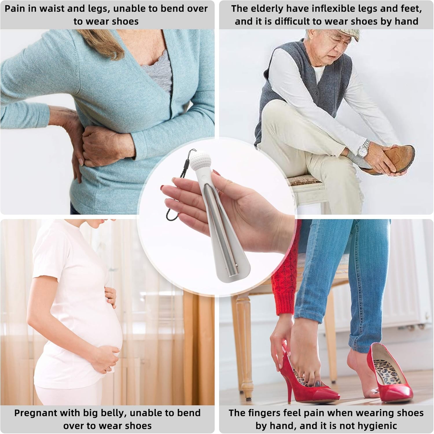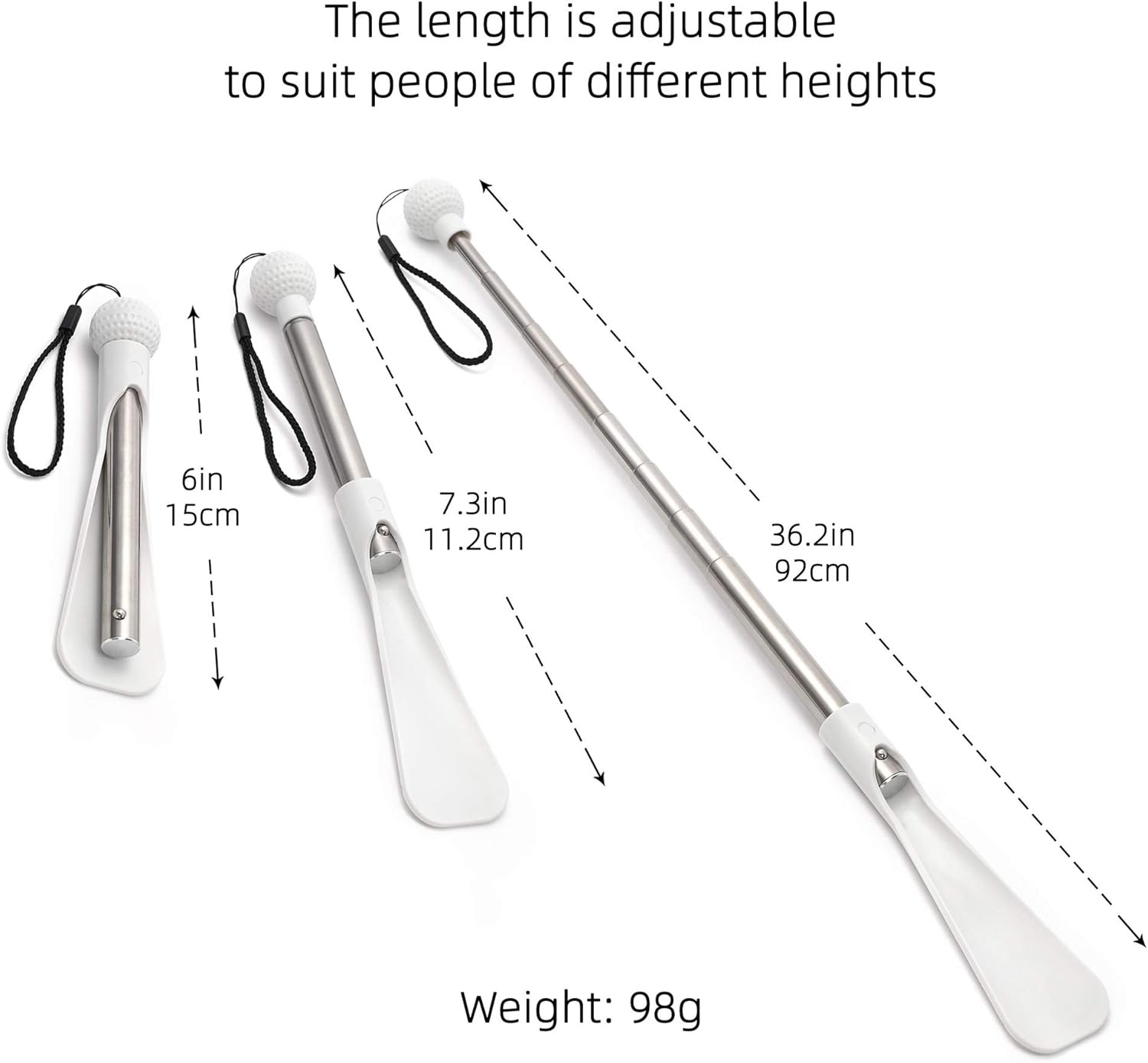 Fanwer Shoe Horn 36.2 Shoe Long Handle Foldable Travel White