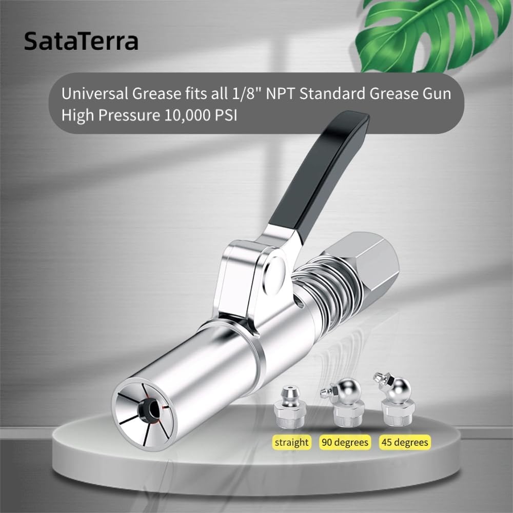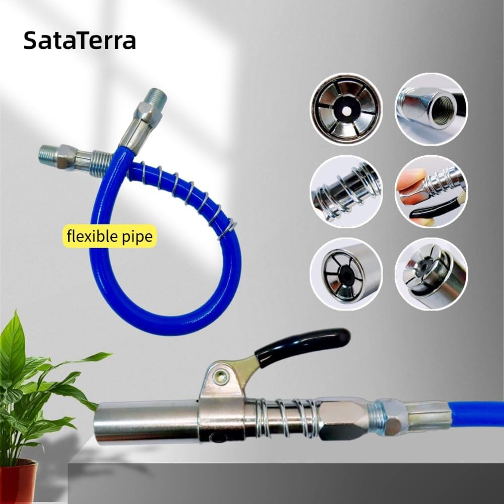 Grease Gun Coupler, Equipped with12-Inch Spring Hose and Six Grease Fittings, Qu