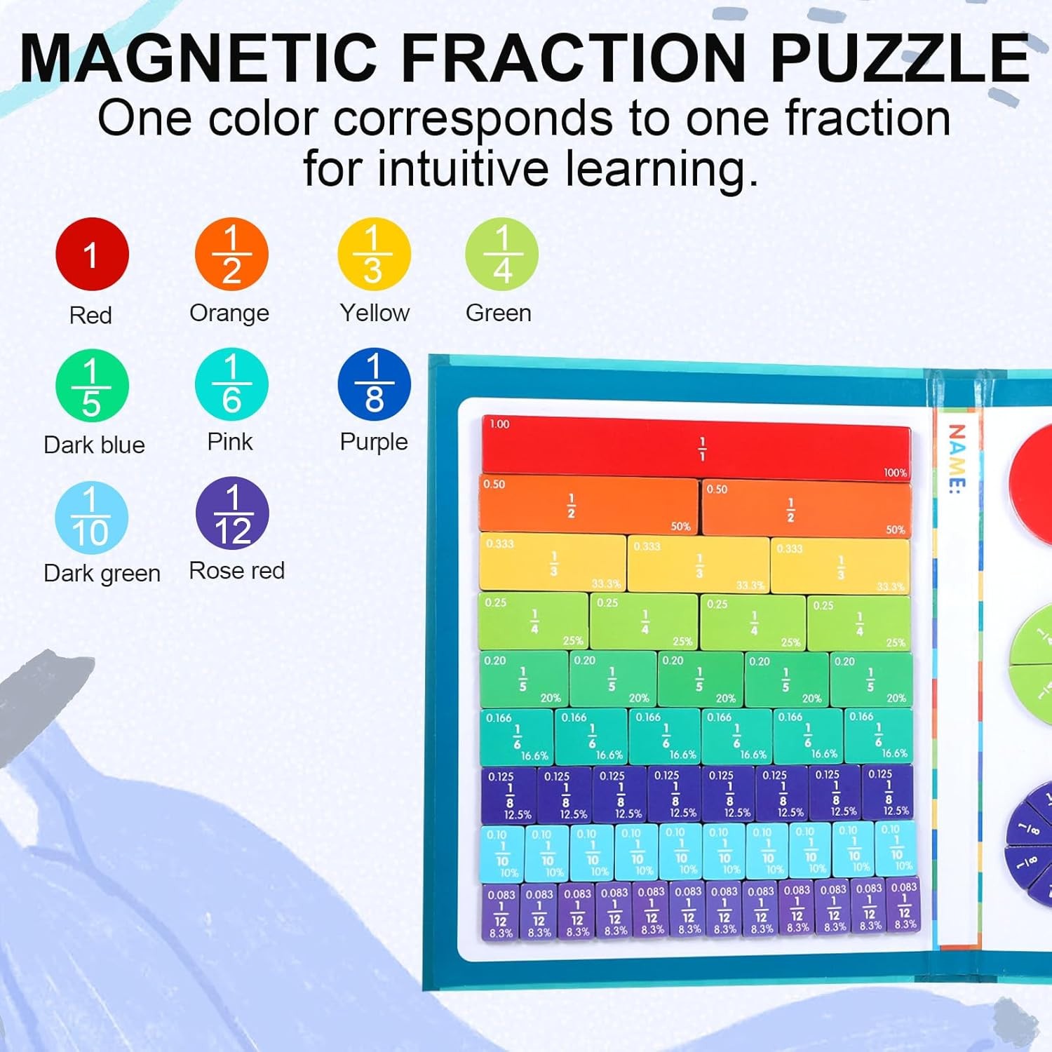 как выглядит Magnetic Fraction Educational Puzzle 102 Pcs Fraction Tiles Circles Set 9 Colo фото