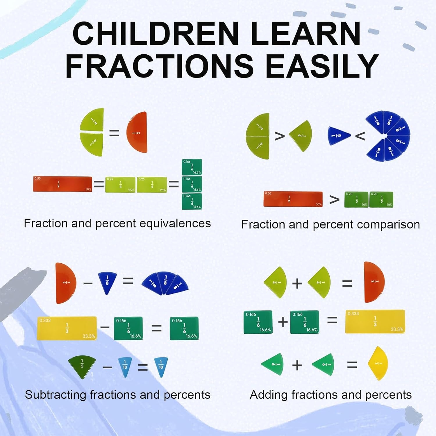 Magnetic Fraction Educational Puzzle 102 Pcs Fraction Tiles Circles Set 9 Colo