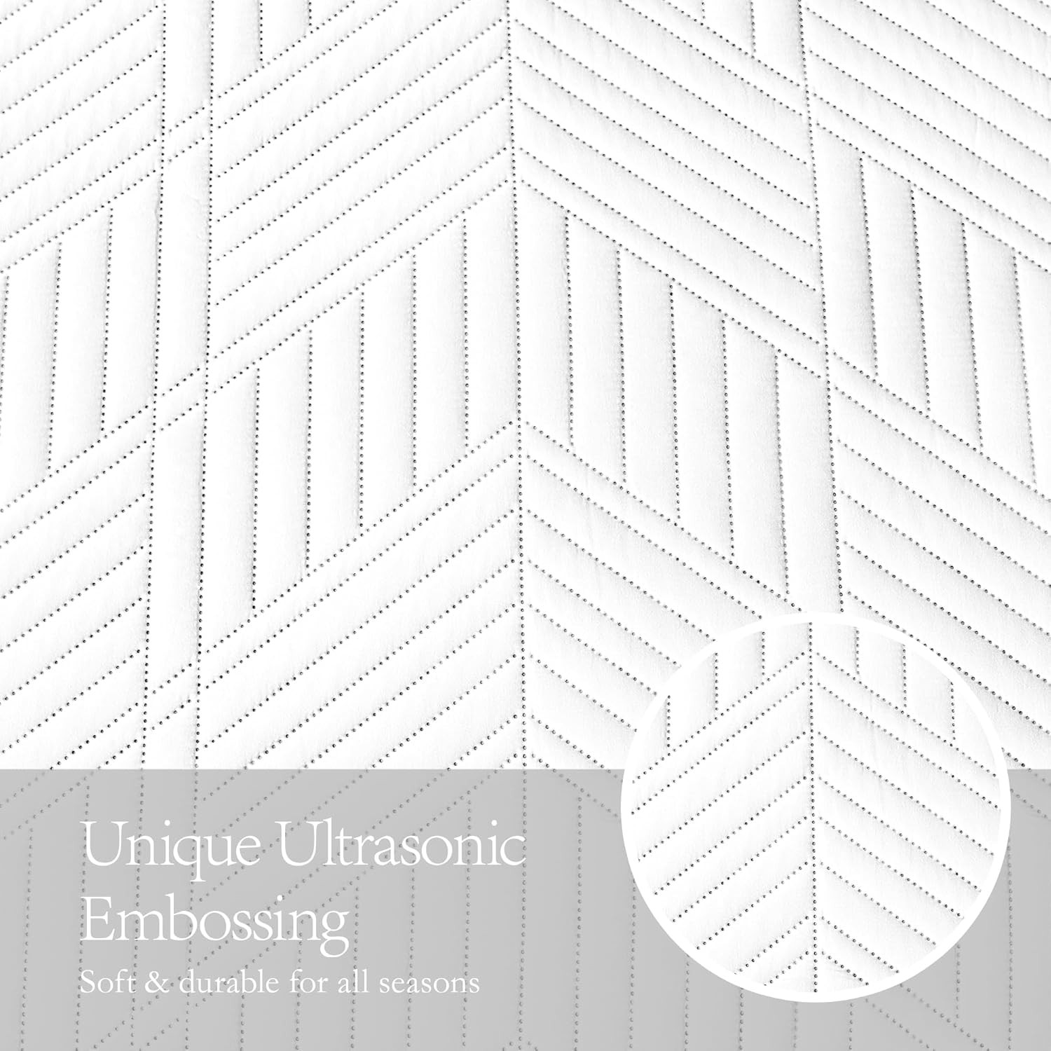 King Quilt Bedding Set,White Ultrasonic King/Cal King Quilt Set Reversible Micro