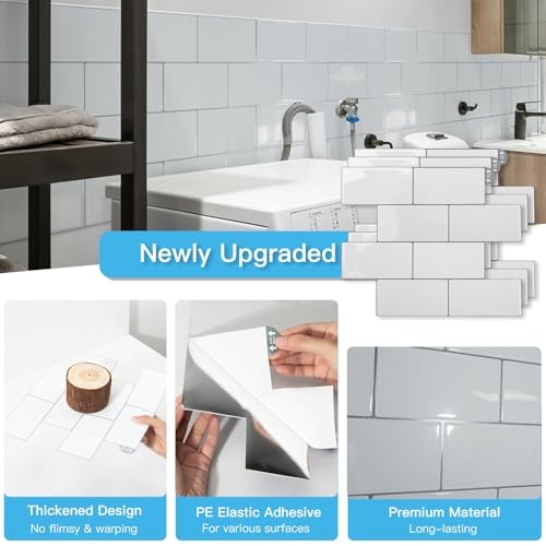 10-Pack Heavy-Duty Peel and Stick Backsplash, 12.6 Warm White With Gray Grout
