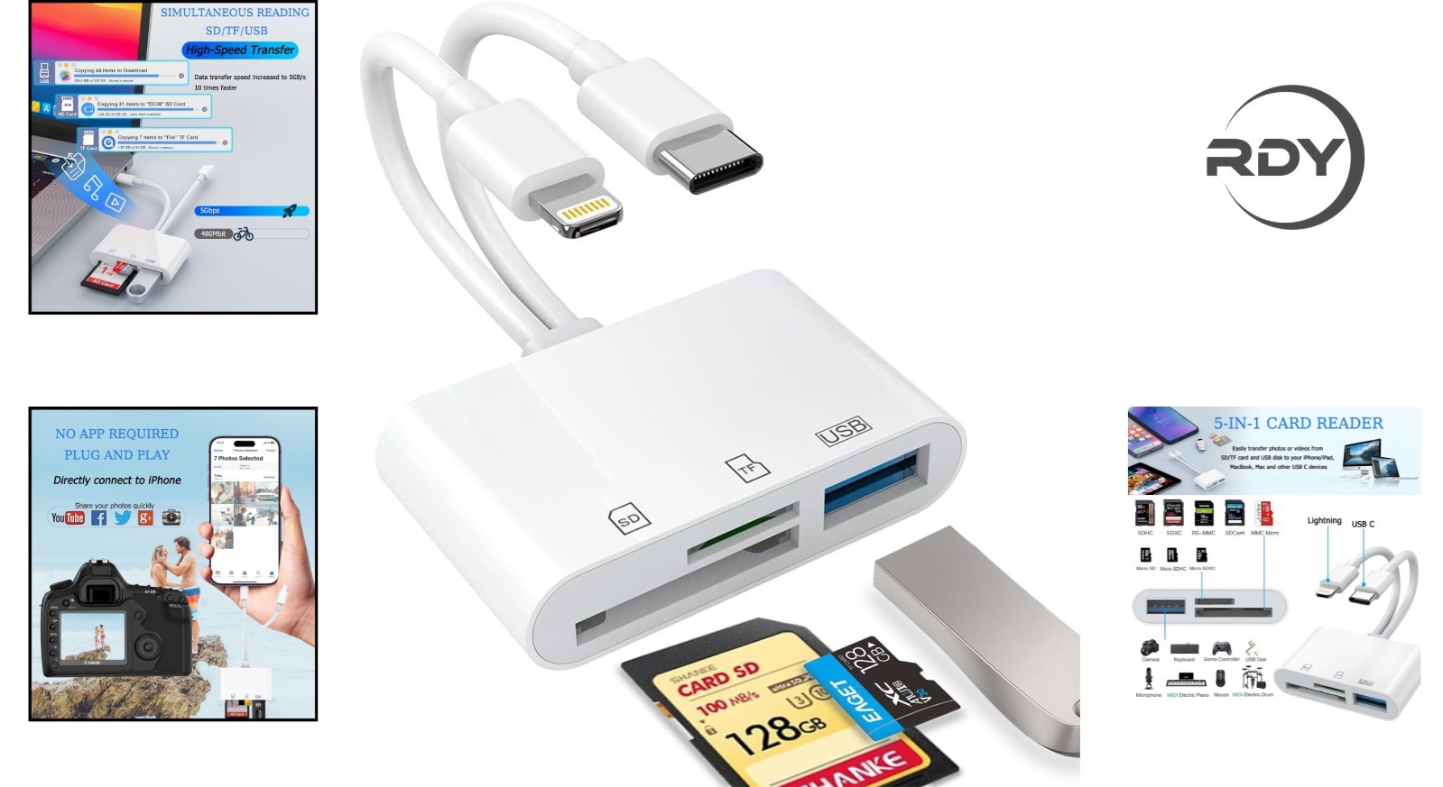 Lightning USB C SD Card Reader - Fast 5 Gbps Transfer for Photographers