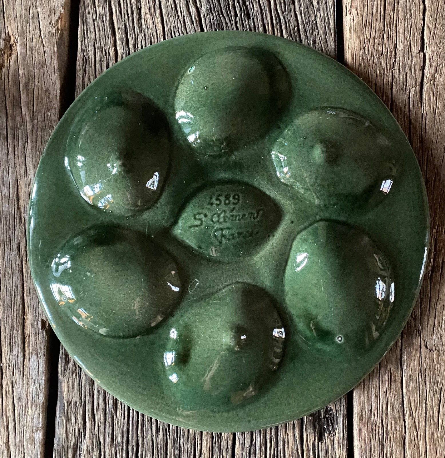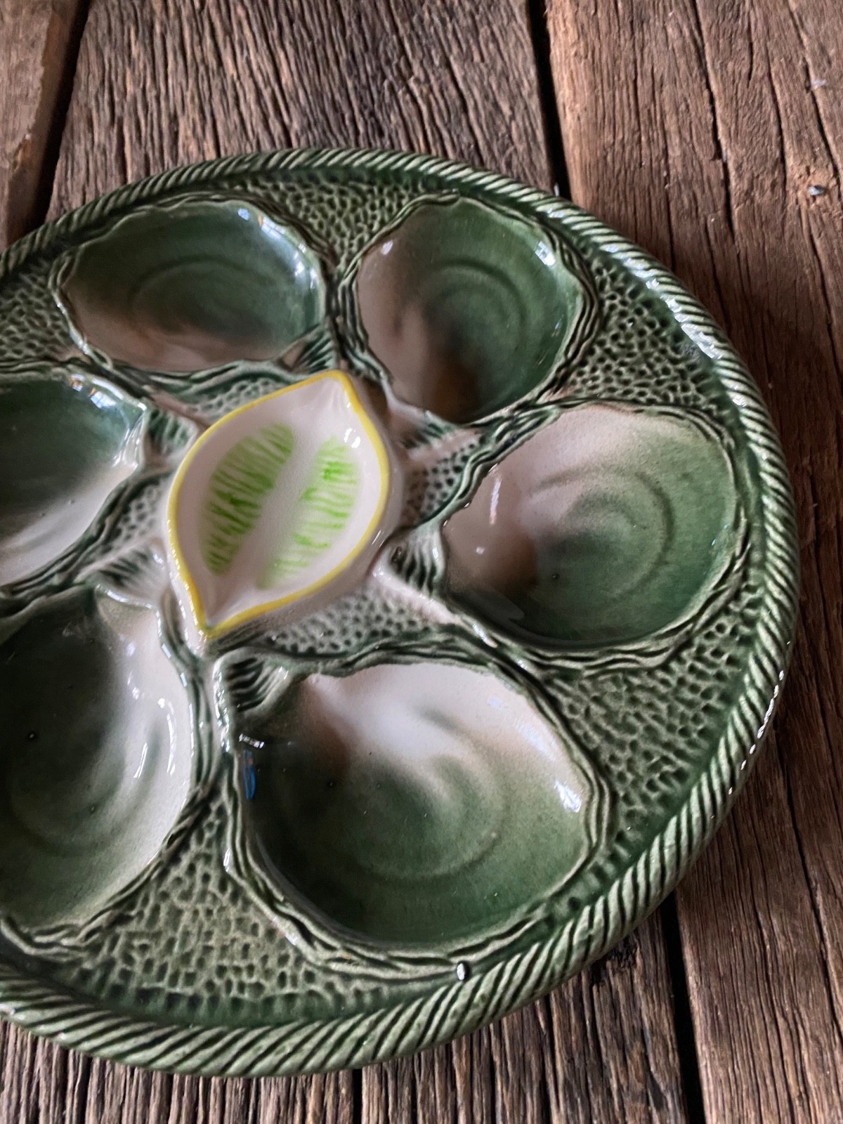 Vintage French Majolica OYSTER PLATE 1930 SAINT CLEMENT
