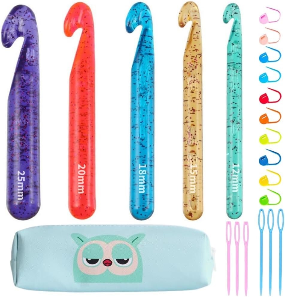 Colorful 5 Large Crochet Hooks Accessories Set - Ensure Comfortable Crocheting