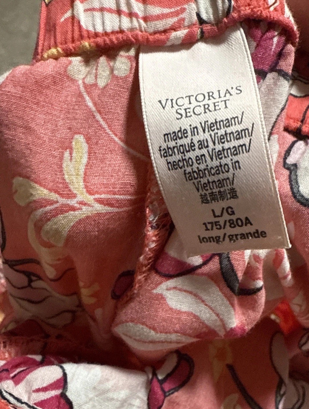 как выглядит VICTORIA S SECRET Peach Flower Floral Cotton Blend Pajama Set L/S Top Pants L фото