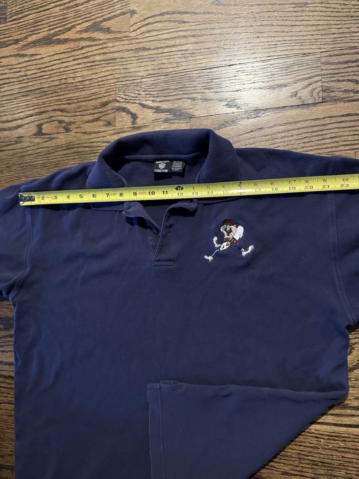 как выглядит Vtg 1996 Warner Bros Tasmanian Devil Taz Golf Polo Shirt L Navy Looney Tunes фото