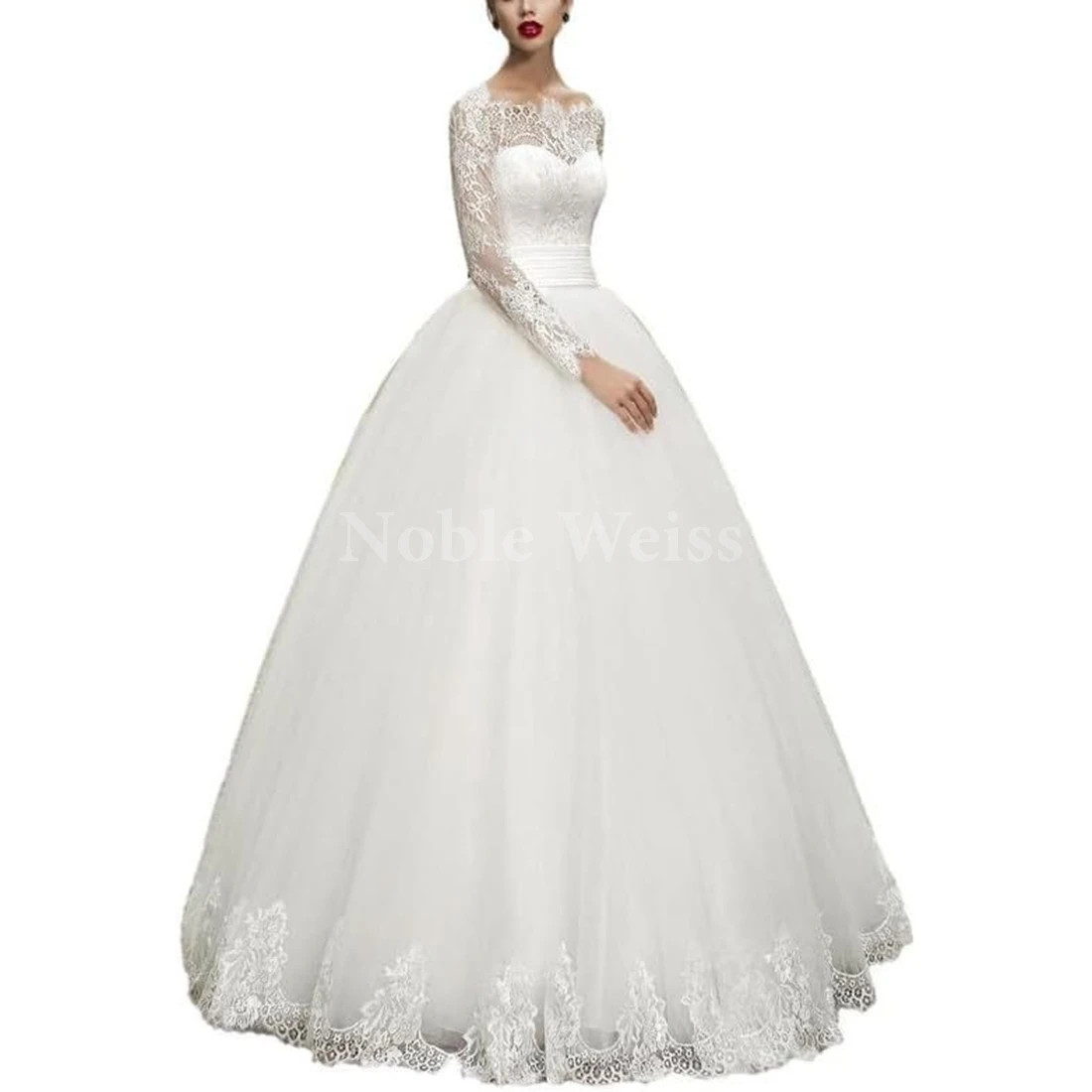Elegant Tulle Wedding Dress A-LINE with Lace Appliques Long Sleeves Ball Gown