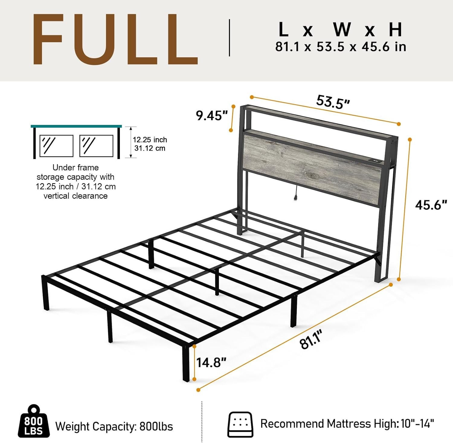 Full Queen King Metal Platform Bed Frame with LED Lights Headboard Charging