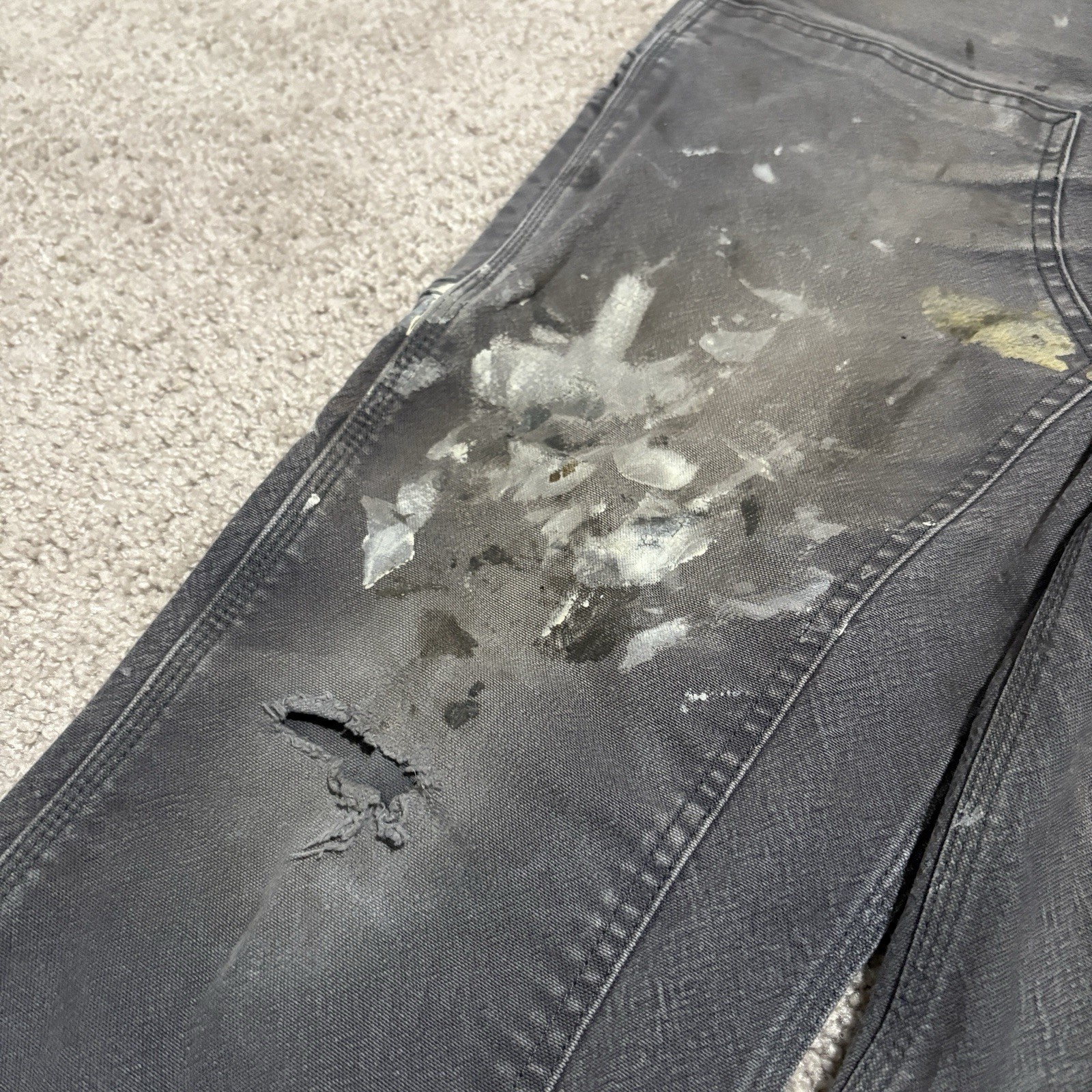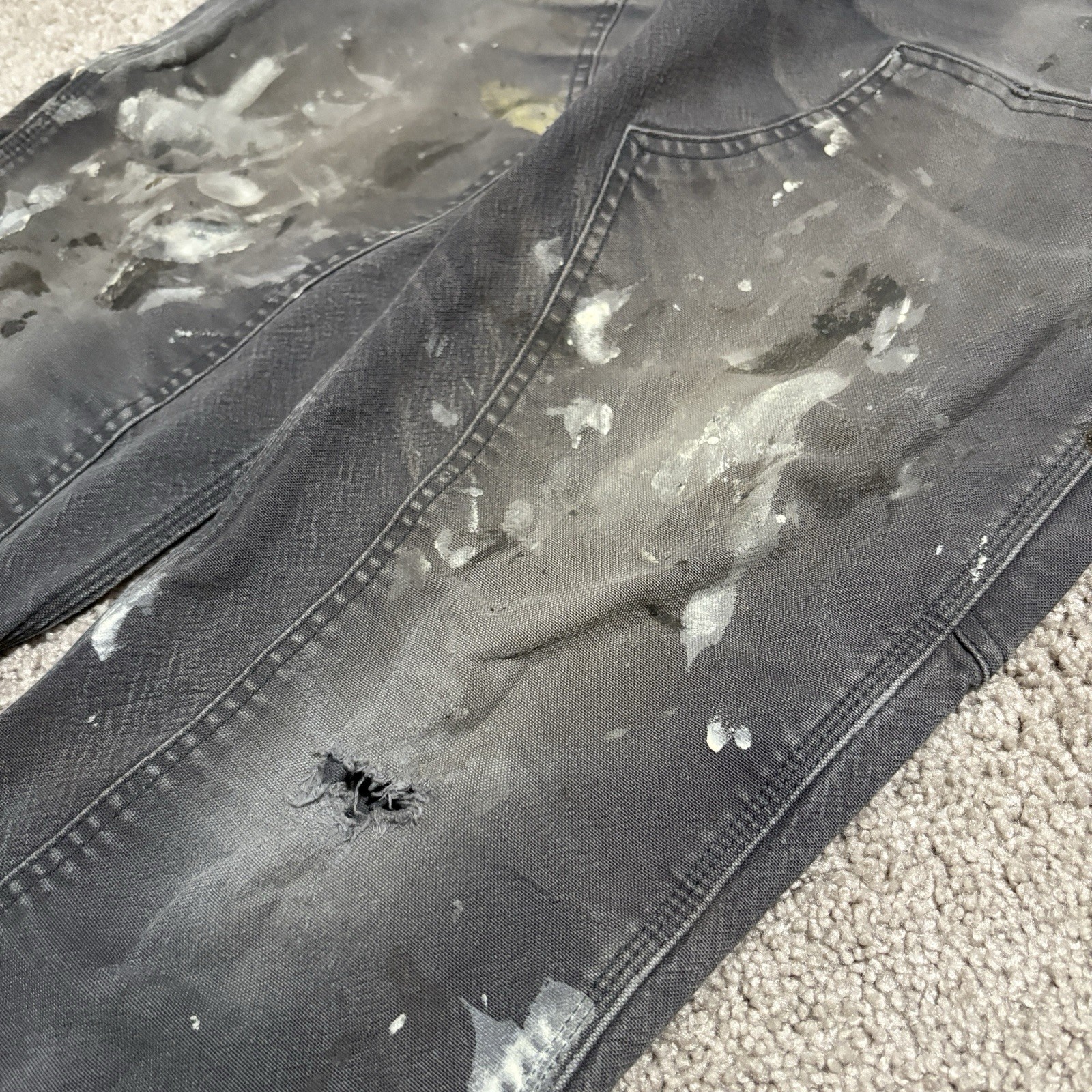 как выглядит Carhartt Mens Double Knee Carpenter Pants 35x32 Paint Splattered Relaxed Fit фото